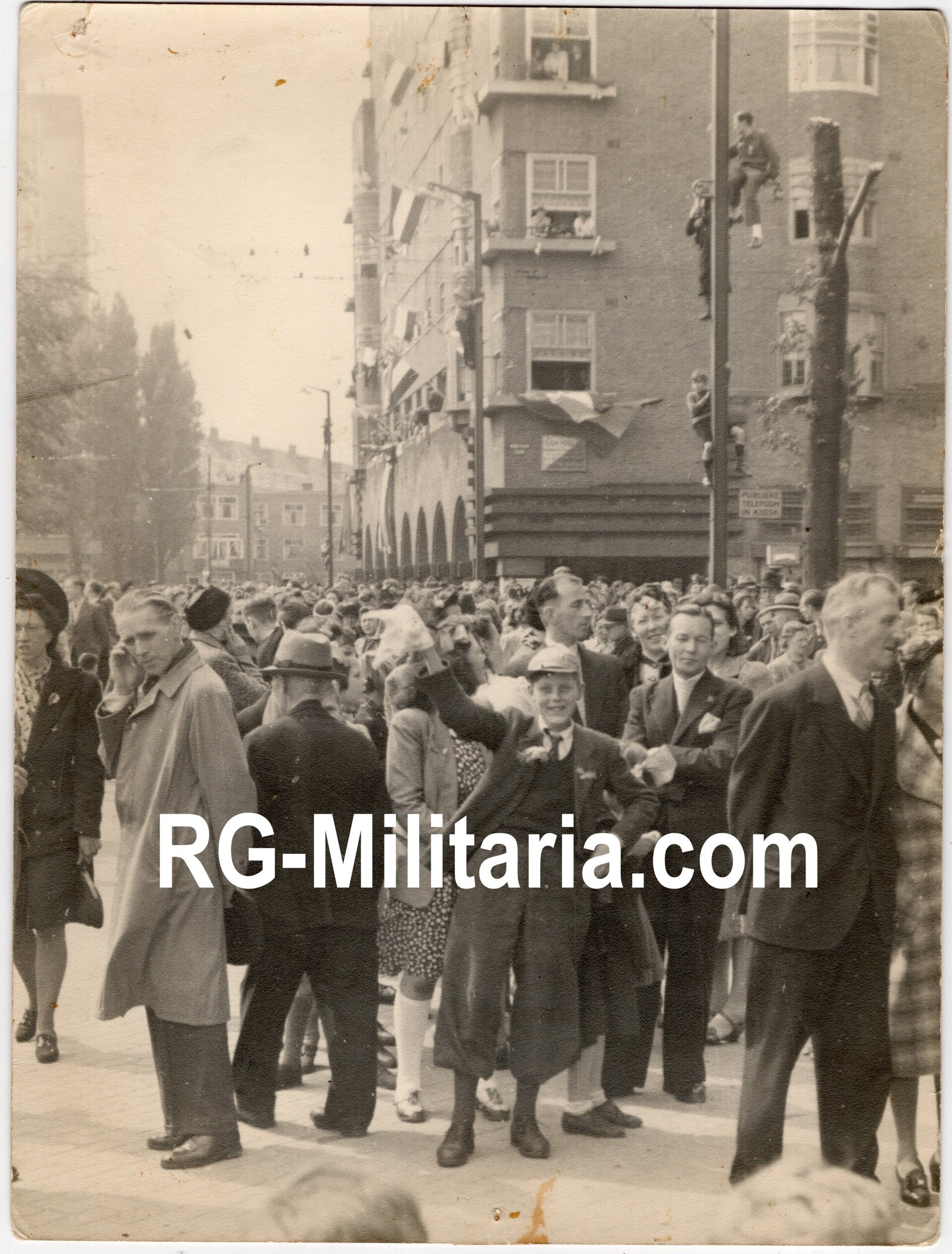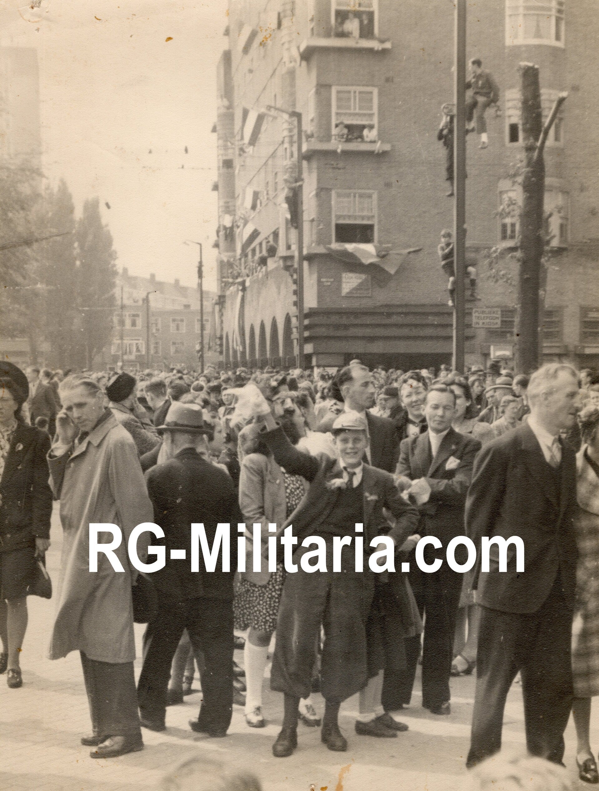 Original WW2 Dutch Liberation Press Photo - Celebrating civilians of Amsterdam, Holland (1945)