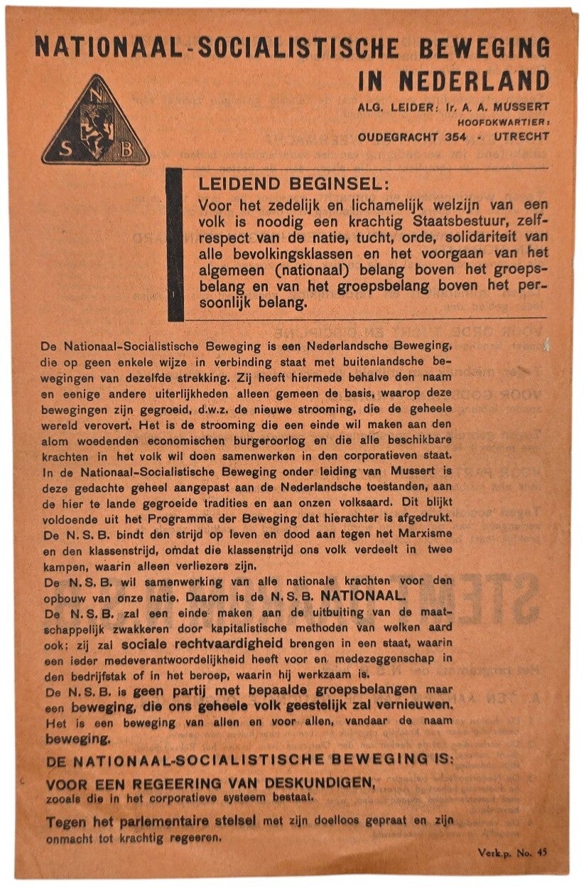 Original WW2 Dutch Collaboration NSB Document - NSB flyer ''Leidend Beginsel''