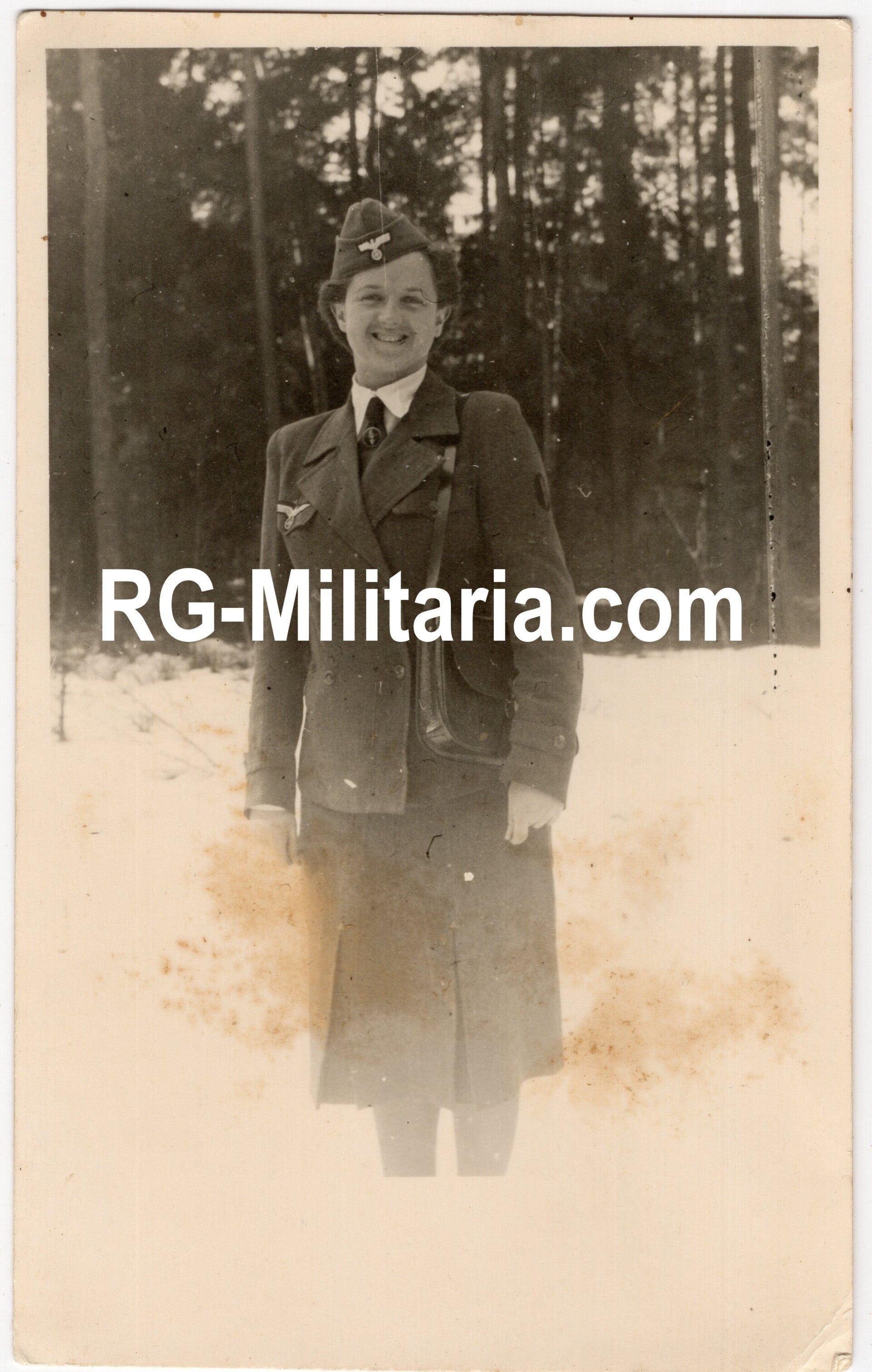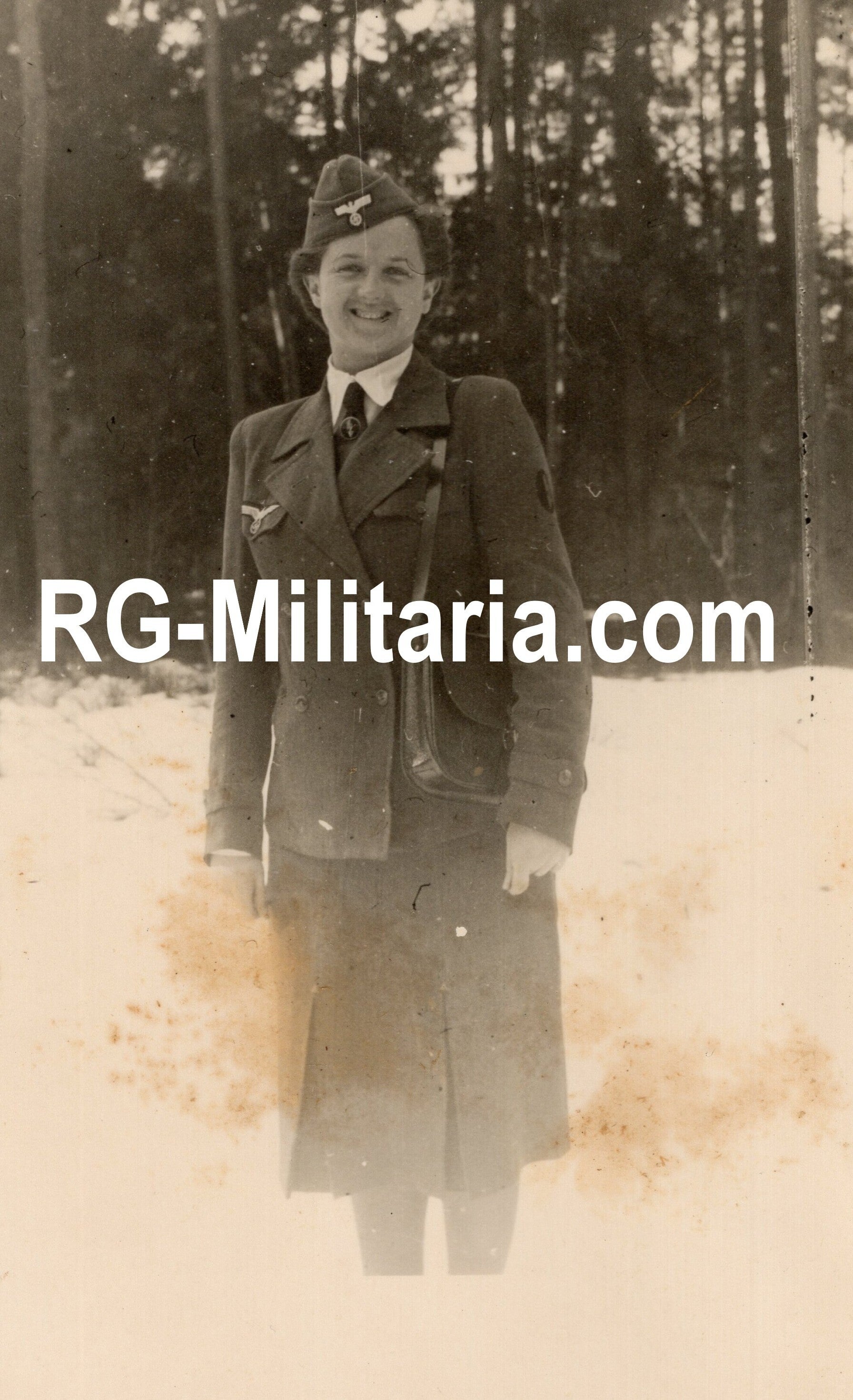 Originele Wo2 Duitse Foto - Vrouwelijke Werhmacht Blitzmadel in de sneeuw, Giessen (1943)
