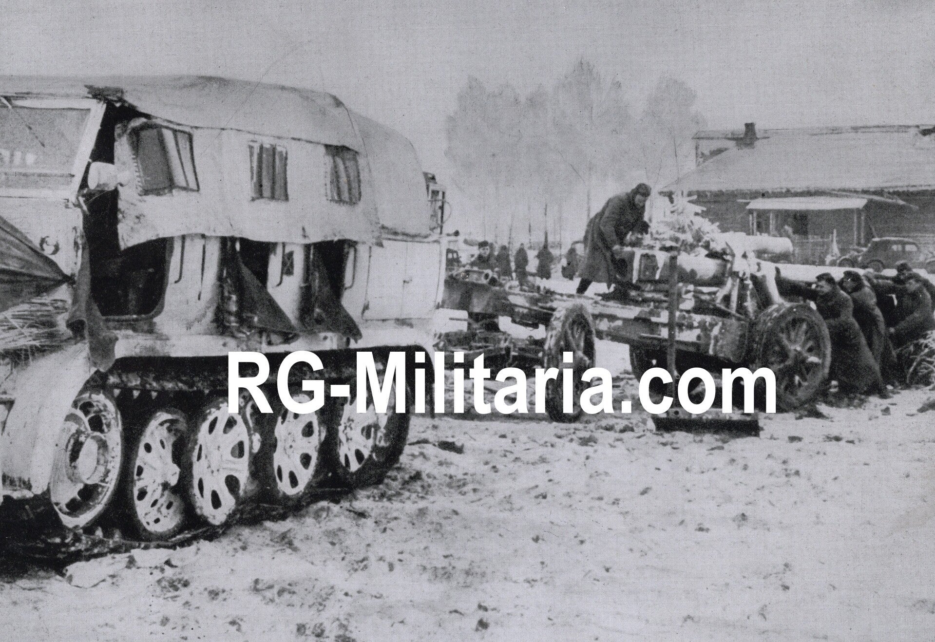 Originele Wo2 Duitse Bilderdienst Persfoto - Raupenschlepper Ost met een flak kanon aan het Oostfront bij Moskau (1941)