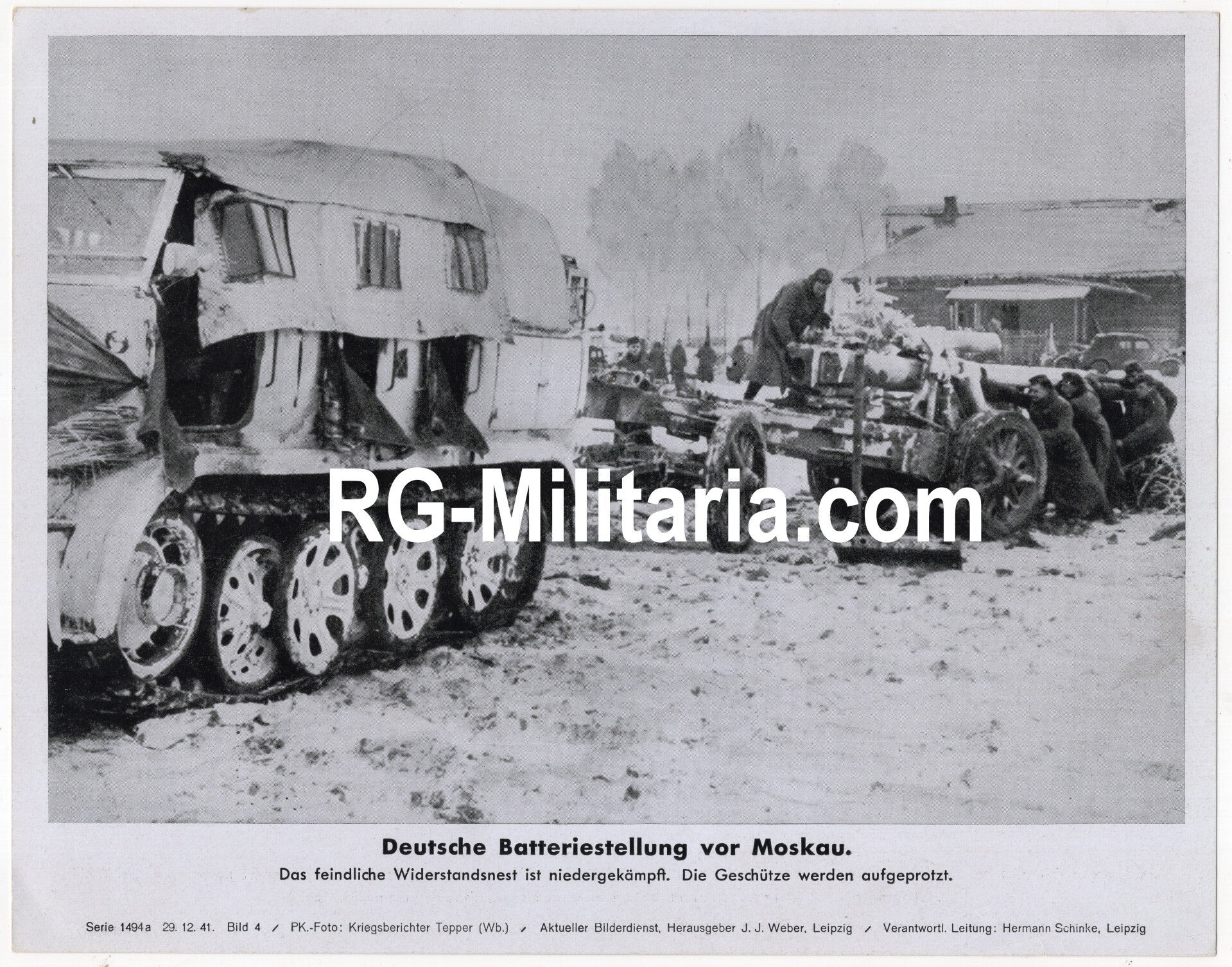 Original WW2 German Bilderdienst Press Photo - Raupenschlepper Ost with a flak canon at the Eastern Front near Moscow (1941)