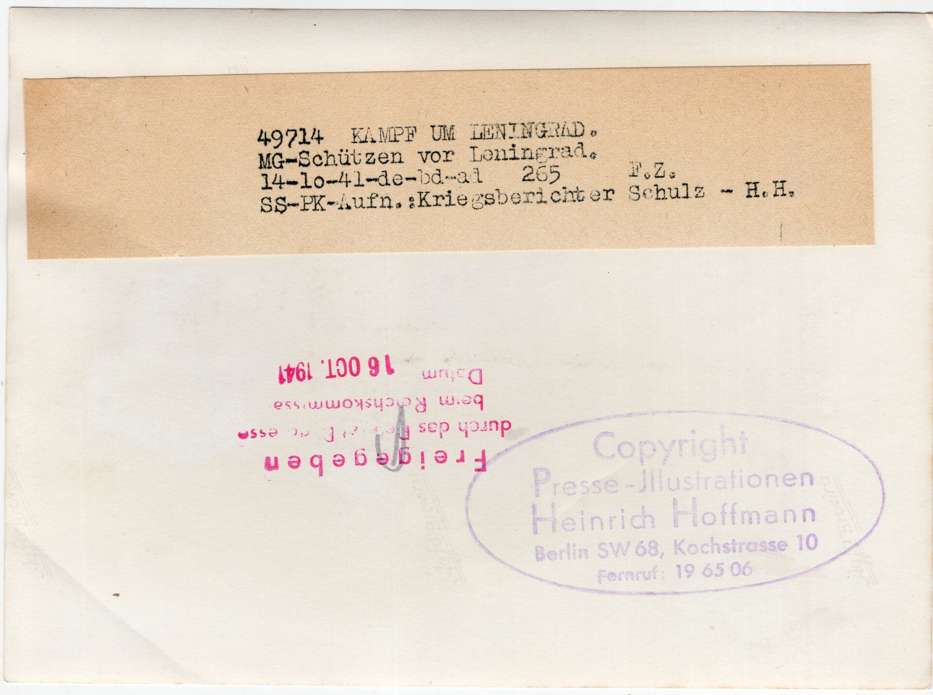 Original WW2 German Waffen SS Press Photo - Fight for Leningrad, Eastern Front (1941)
