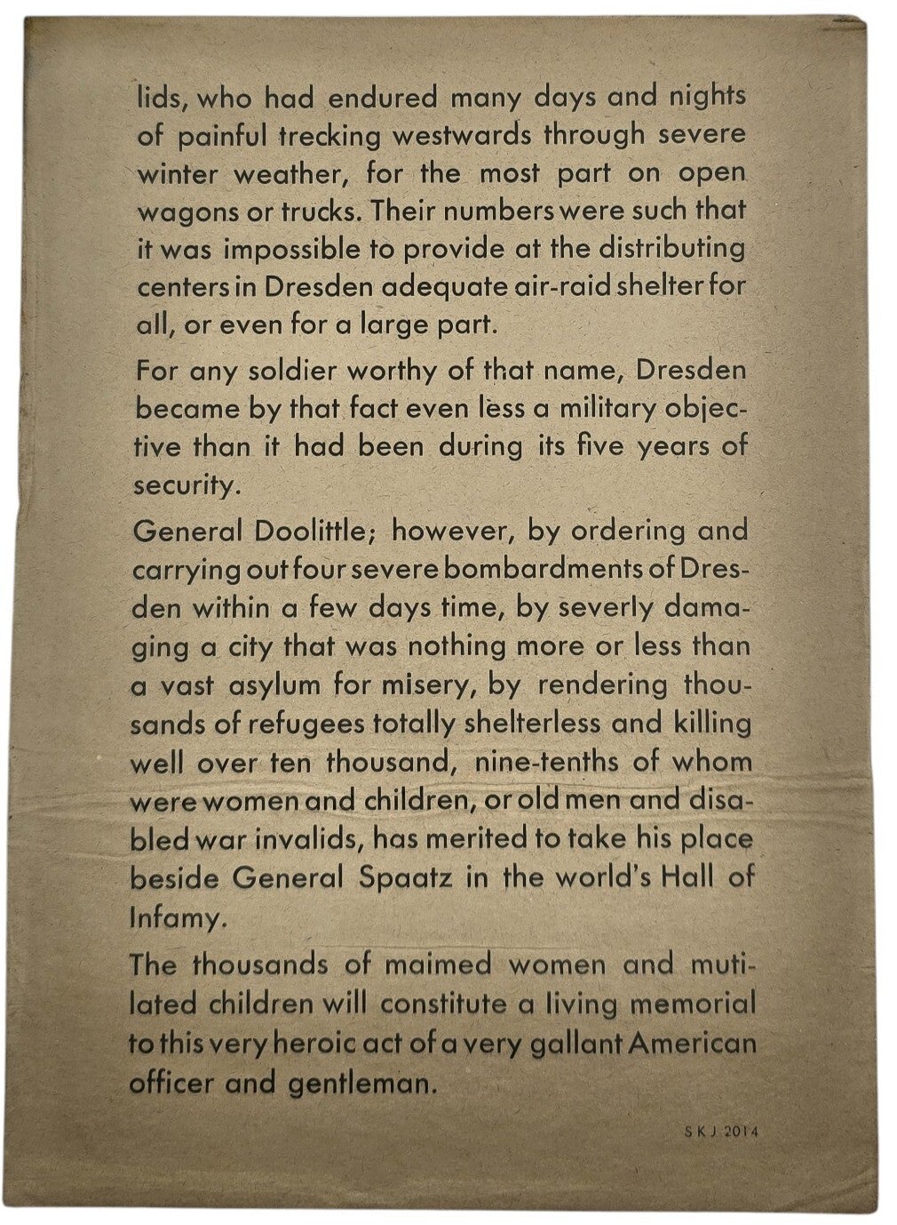 Original WW2 German Leaflet - SKJ 2014 The White feather for General Doolittle, bombing of Dresden (1945)