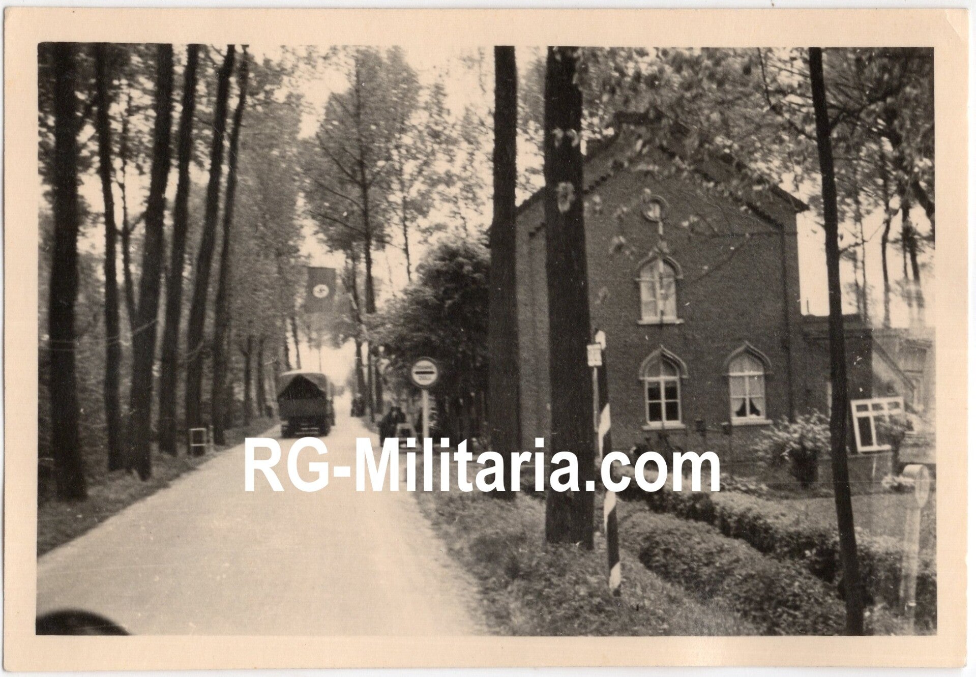 Originele Wo2 Duitse Foto - Duitse militairen rijden de Nederlandse grens over, Nederland, mei (1940)