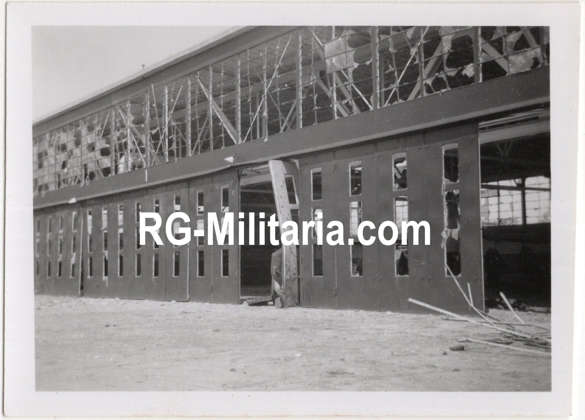 Originele Wo2 Duitse Foto - Beschadigde hangaar bij het Nederlandse LVA vliegveld van Bergen, Nederland (1940)