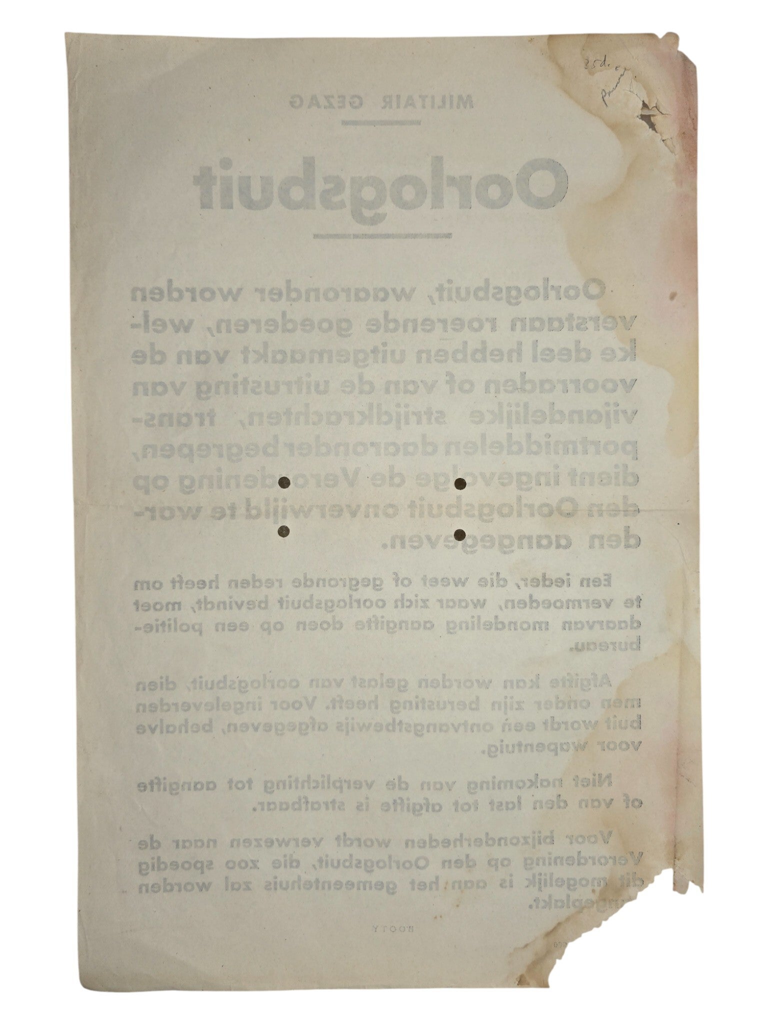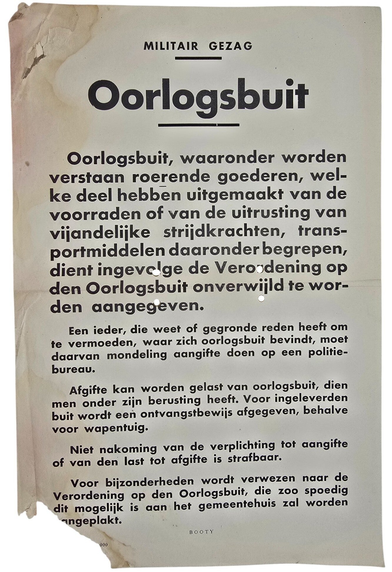 Original WW2 Dutch Liberation Poster - MG Militair Gezag fiding military goods (1945)