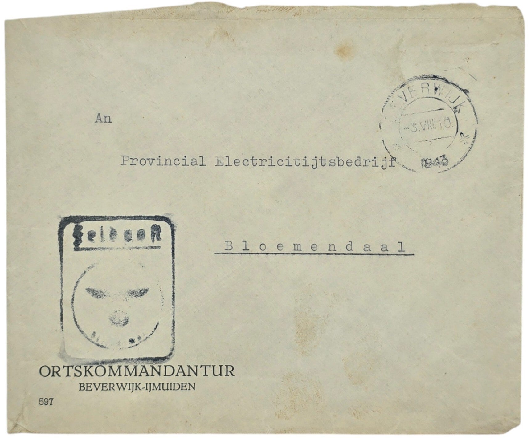 Original WW2 German Document - Envelope Ortskommandantur IJmuiden, Beverwijk, Bloemendaal (1943)