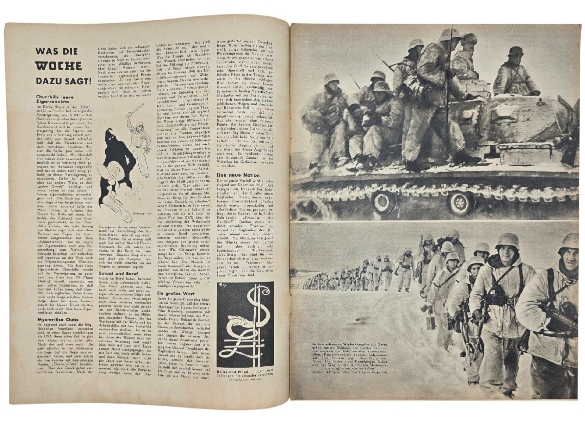 Die Woche is a German magazine published between 1899 and 1944. The magazine illustrated the news around the world. From the rise of the NSDAP, Die Woche was Nazified and was filled with national socialist articles and images. The magazine ended in 1944 because of paper shortages.
