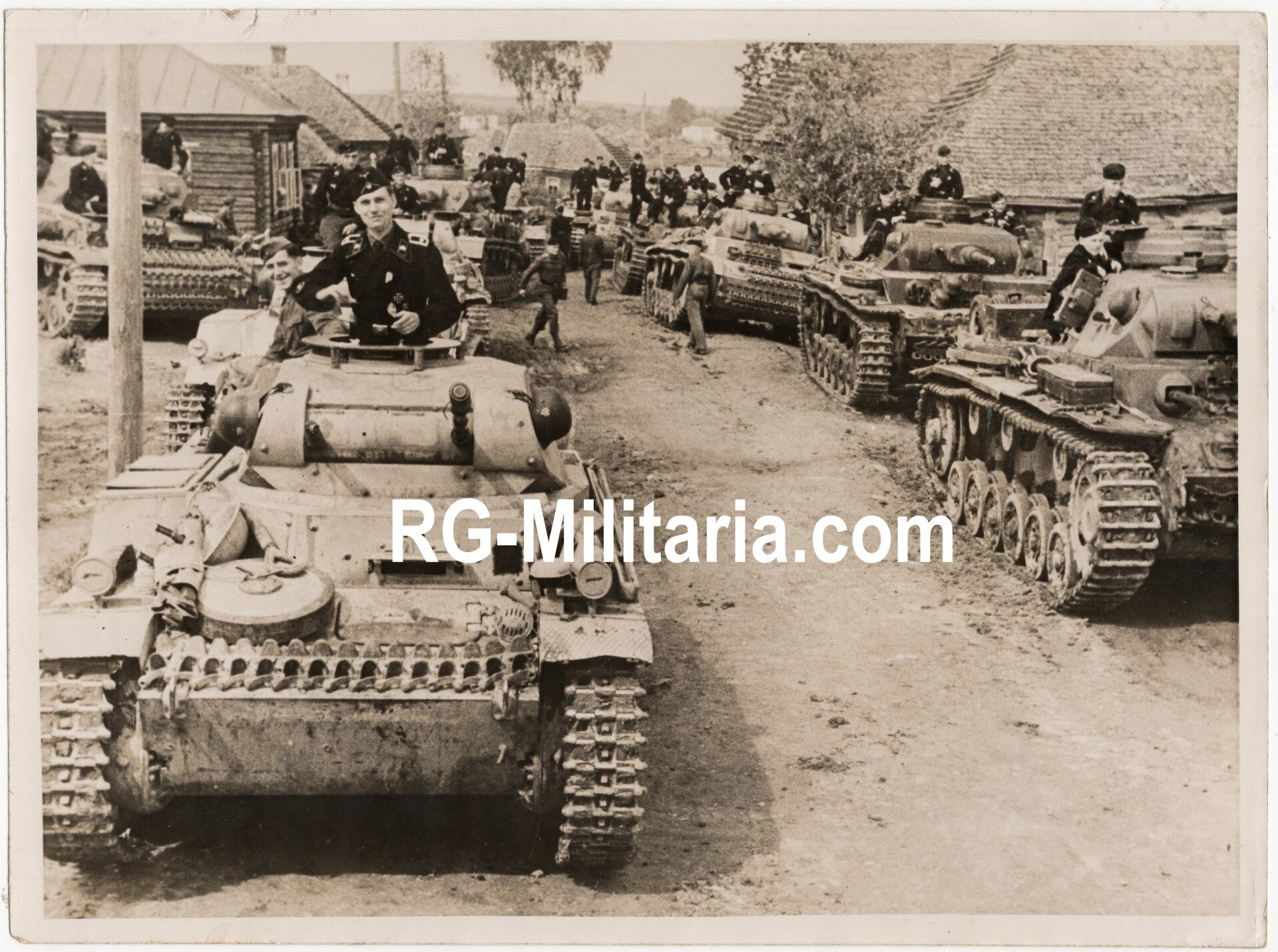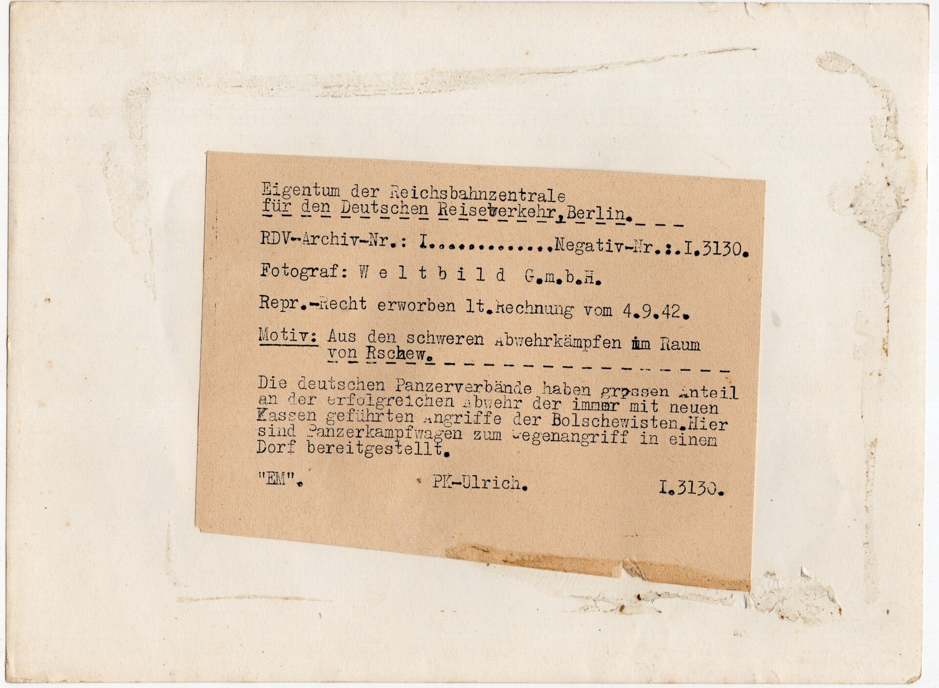 Original WW2 German Press Photo - German Panzer 2, 3 & 4 Tanks near Rschew, Eastern Front (1942)