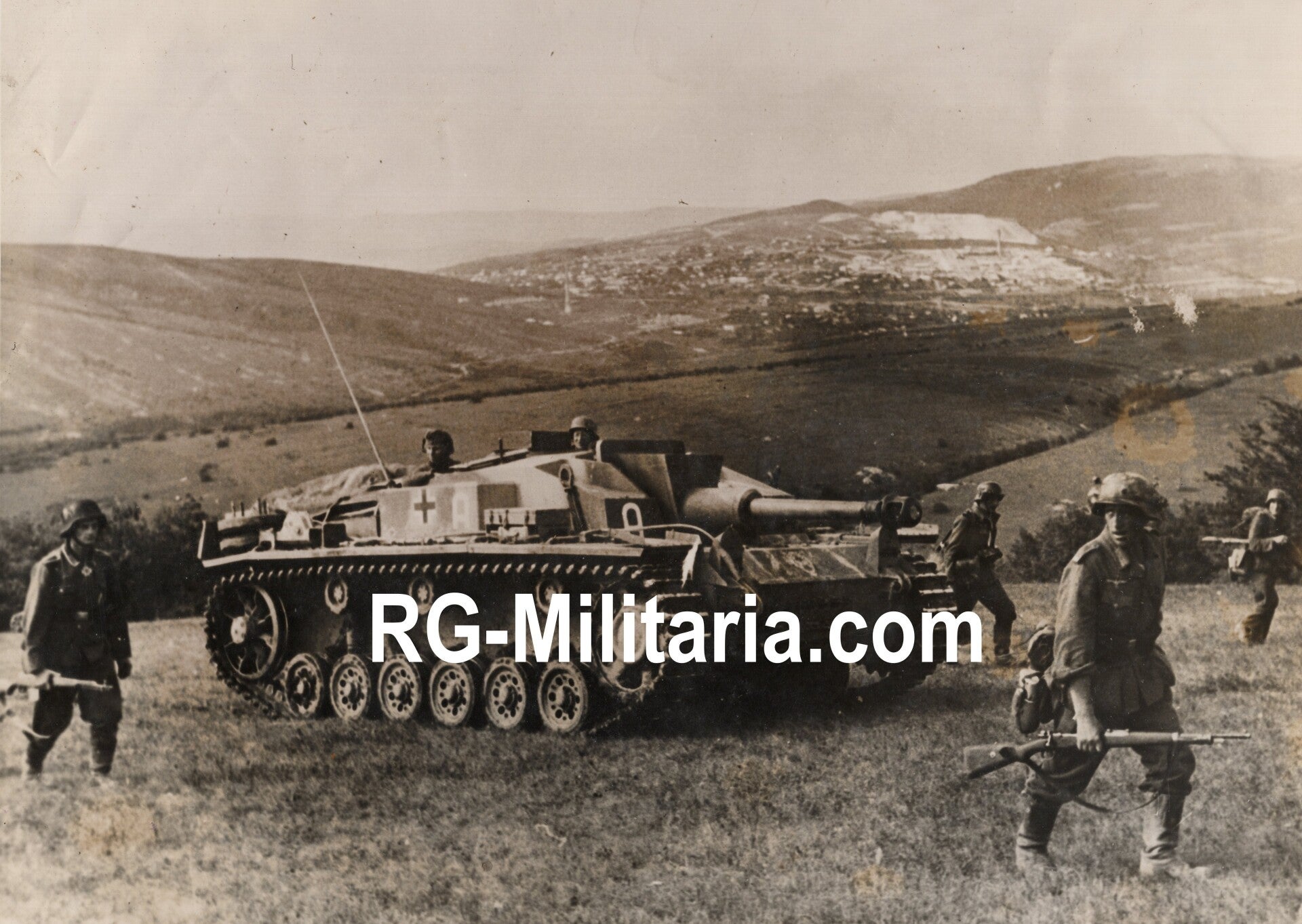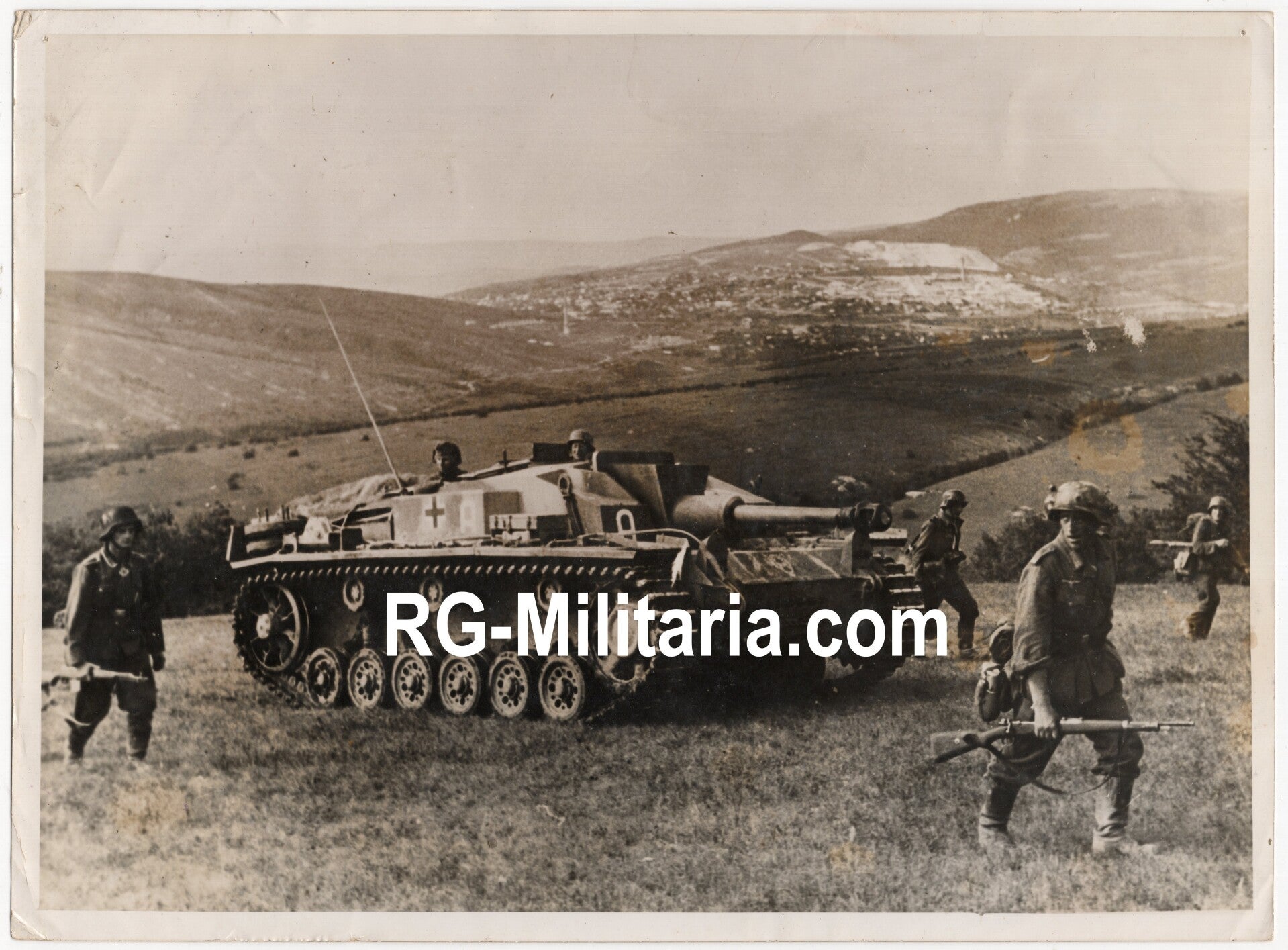 Original WW2 German Press Photo - German Stug III Tank with Knights Cross wearer, Eastern Front (1942)