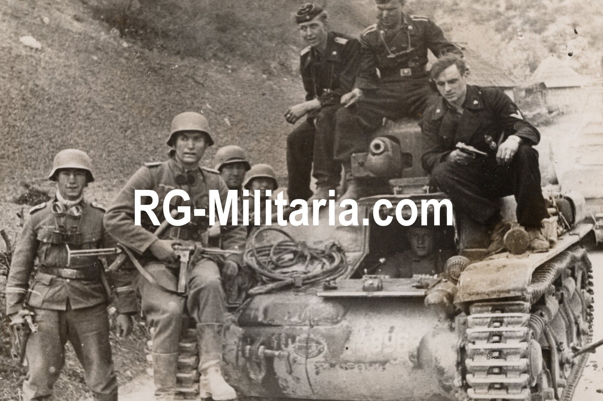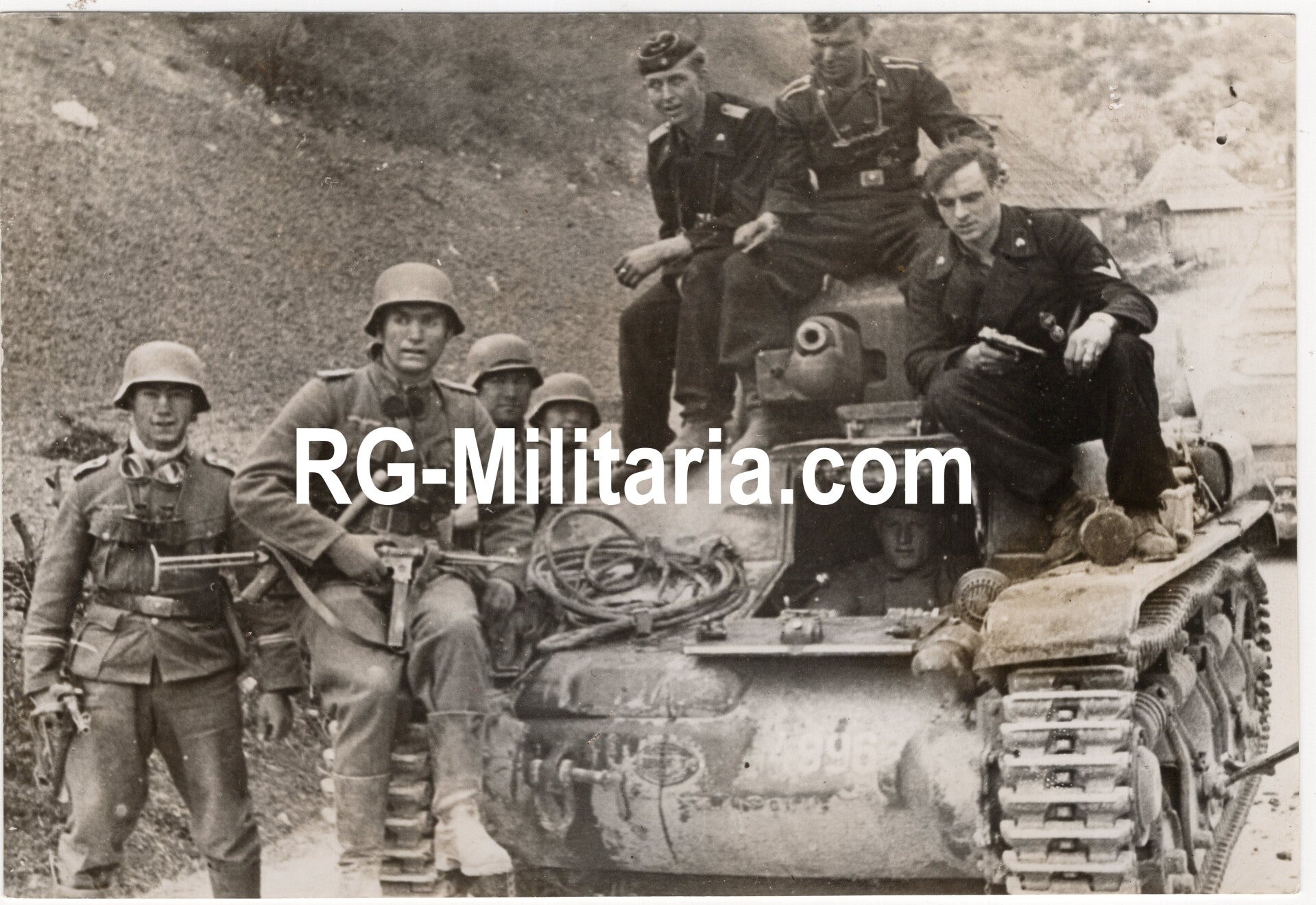Originele Wo2 Duitse Persfoto - Duitse militairen met een buitgemaakte Franse tank (1941)