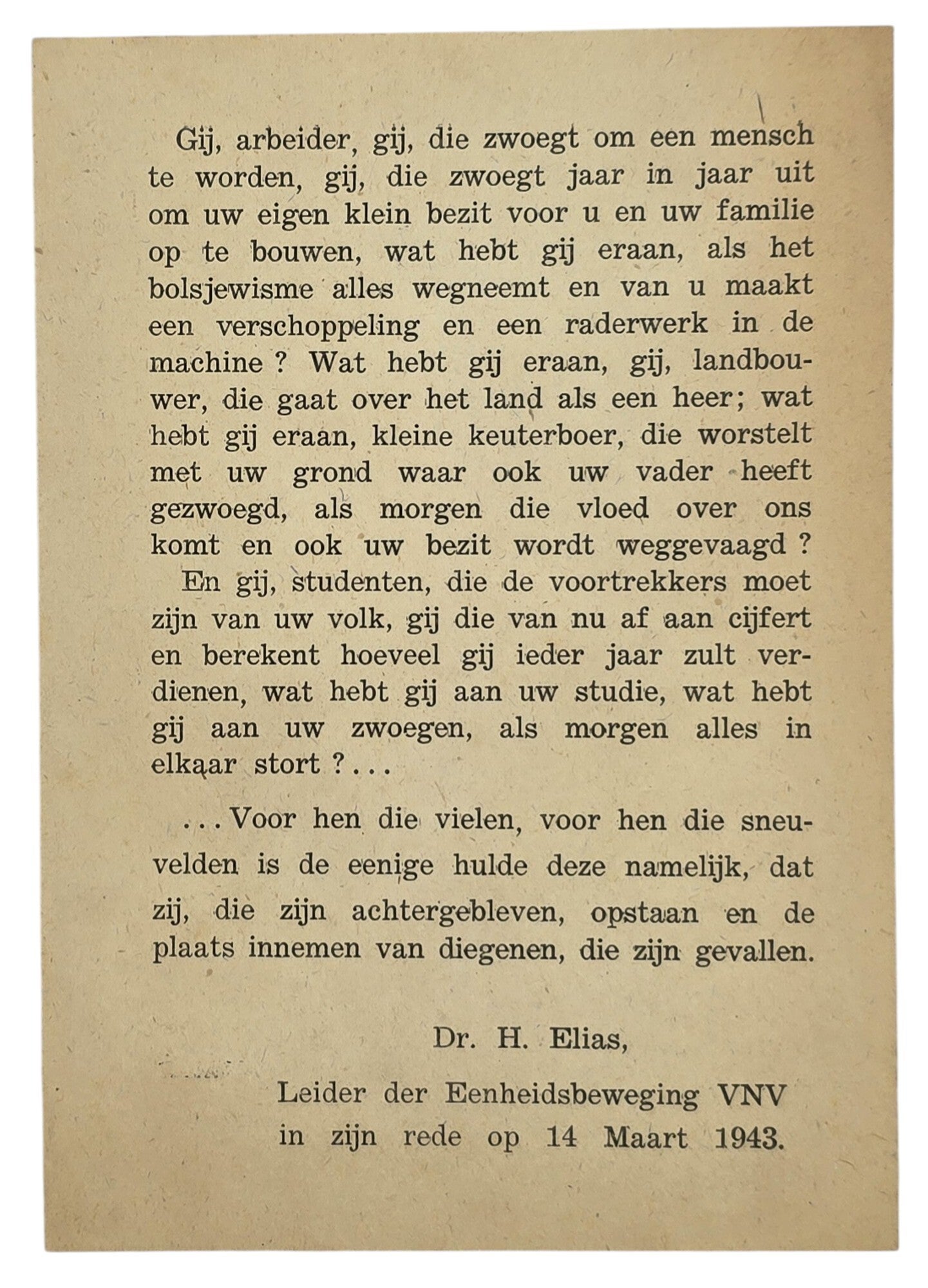 Original WW2 Flemish Waffen SS Document - Dr. H. Elias VNV call for more SS volunteers (1943)