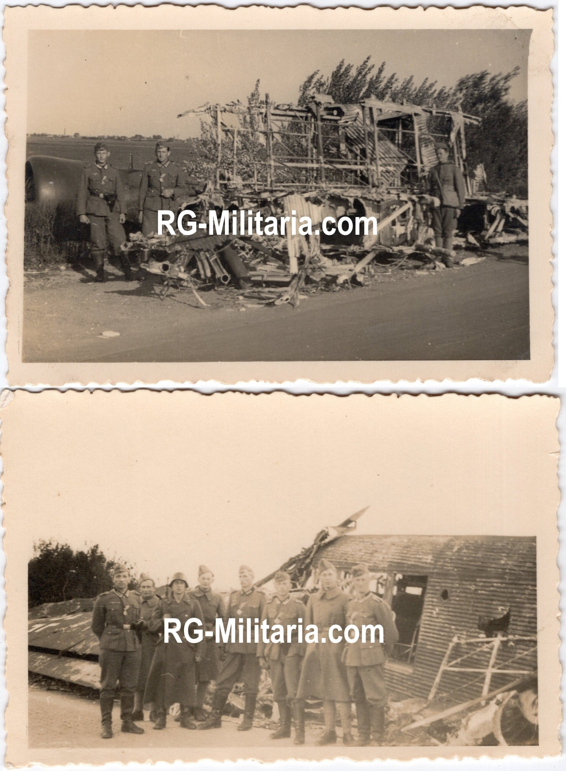 Original WW2 German Photo - German and Dutch soldiers at the Rijksweg near Delft with crashed Junkers JU 52 airplanes, Blitzkrieg May, Holland (1940)