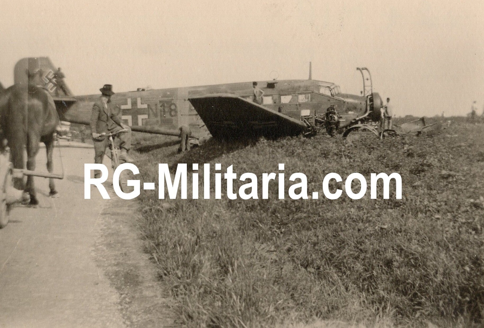 Originele Wo2 Duitse Foto - Rijksweg bij Delft met gelande Junkers JU 52-vliegtuig, Blitzkrieg mei, Nederland (1940)