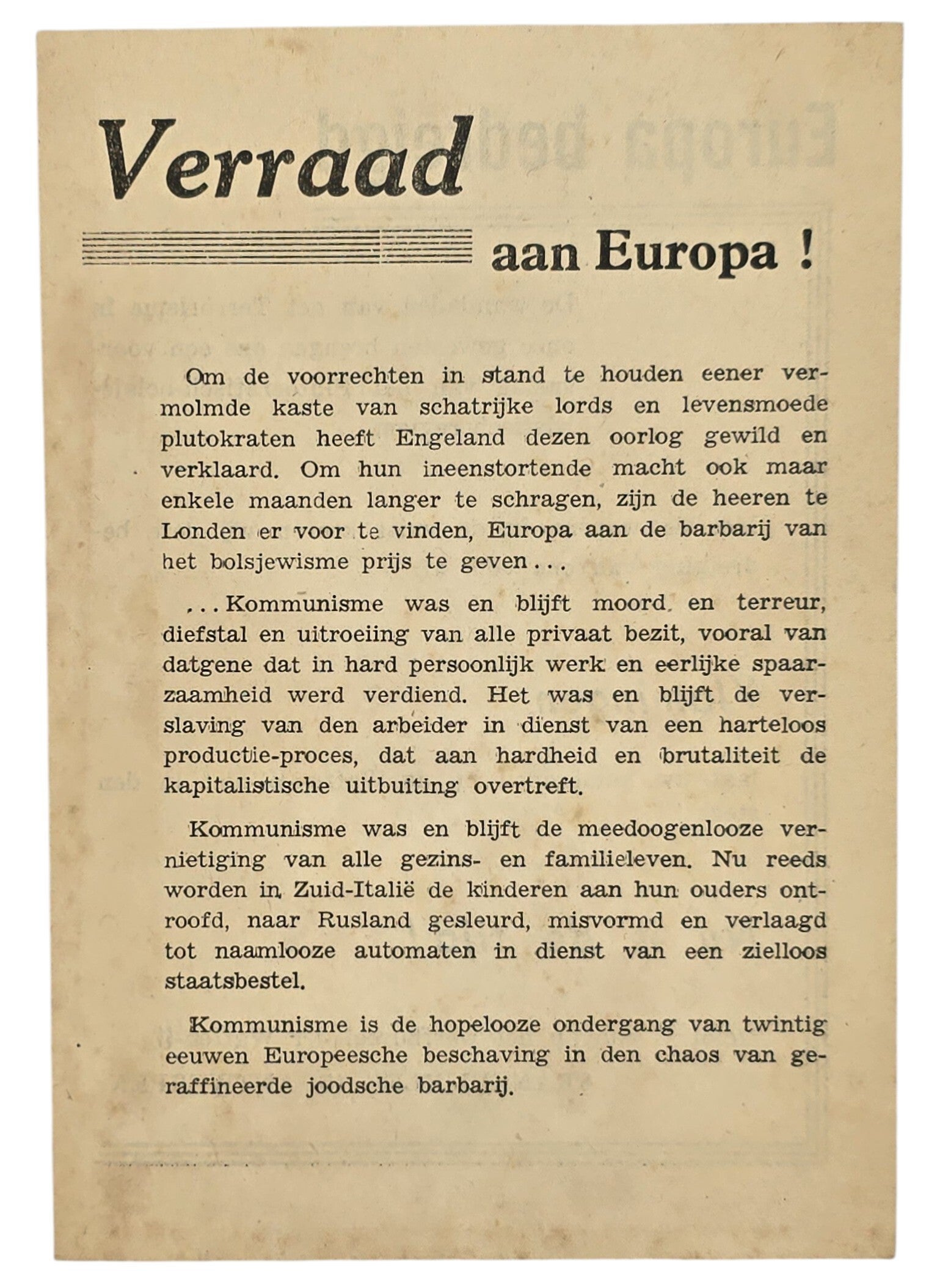 Origineel Wo2 Vlaamse Waffen SS Document - Veraad aan Europa!, Werfbureel der Waffen SS, Antwerpen