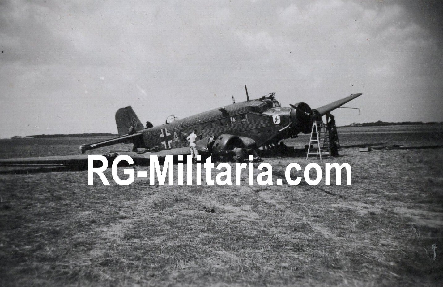 Originele Wo2 Duitse Foto - Rotterdamse vliegveld Waalhaven met gecrashte Junker JU 52 vliegtuig met decal IV./KGzbV.1, Nederland (1940)