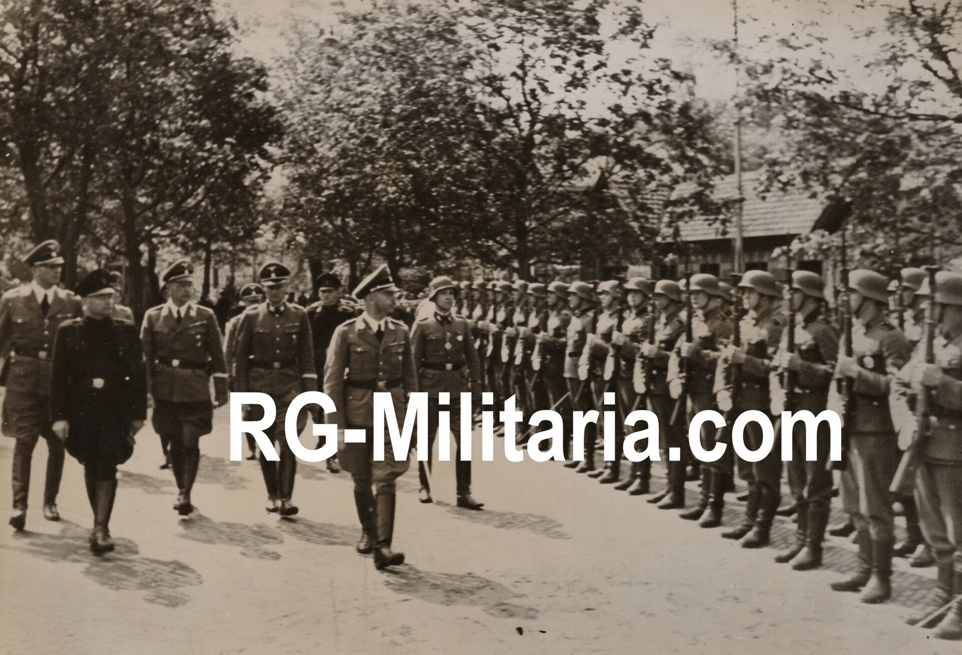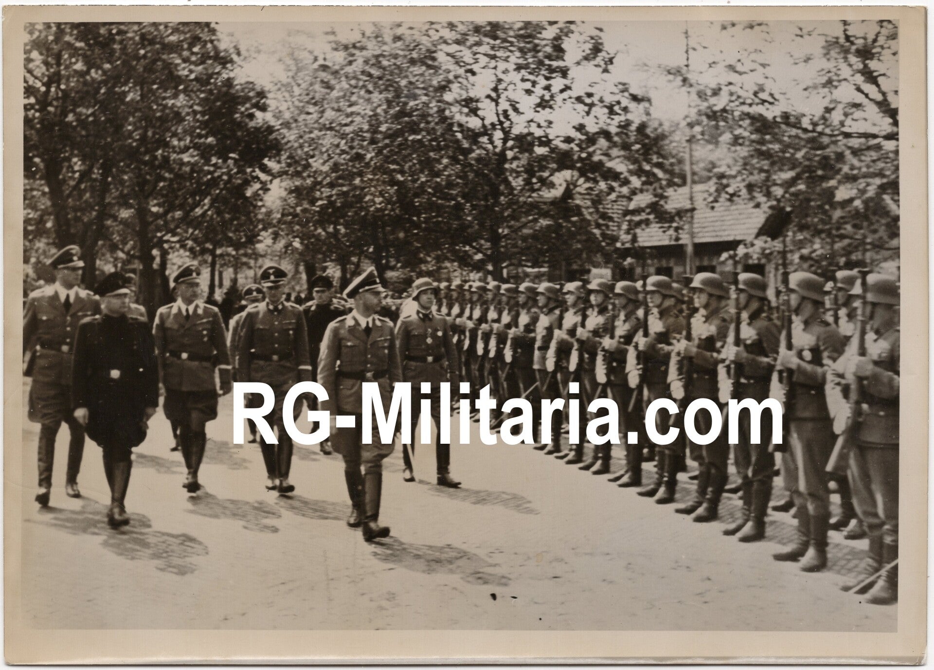 Originele WO2 Duitse Persfoto - Heinrich Himmler inspecteert Nederlandse SS militairen in de Dierentuin, Den Haag, Nederland (1942)