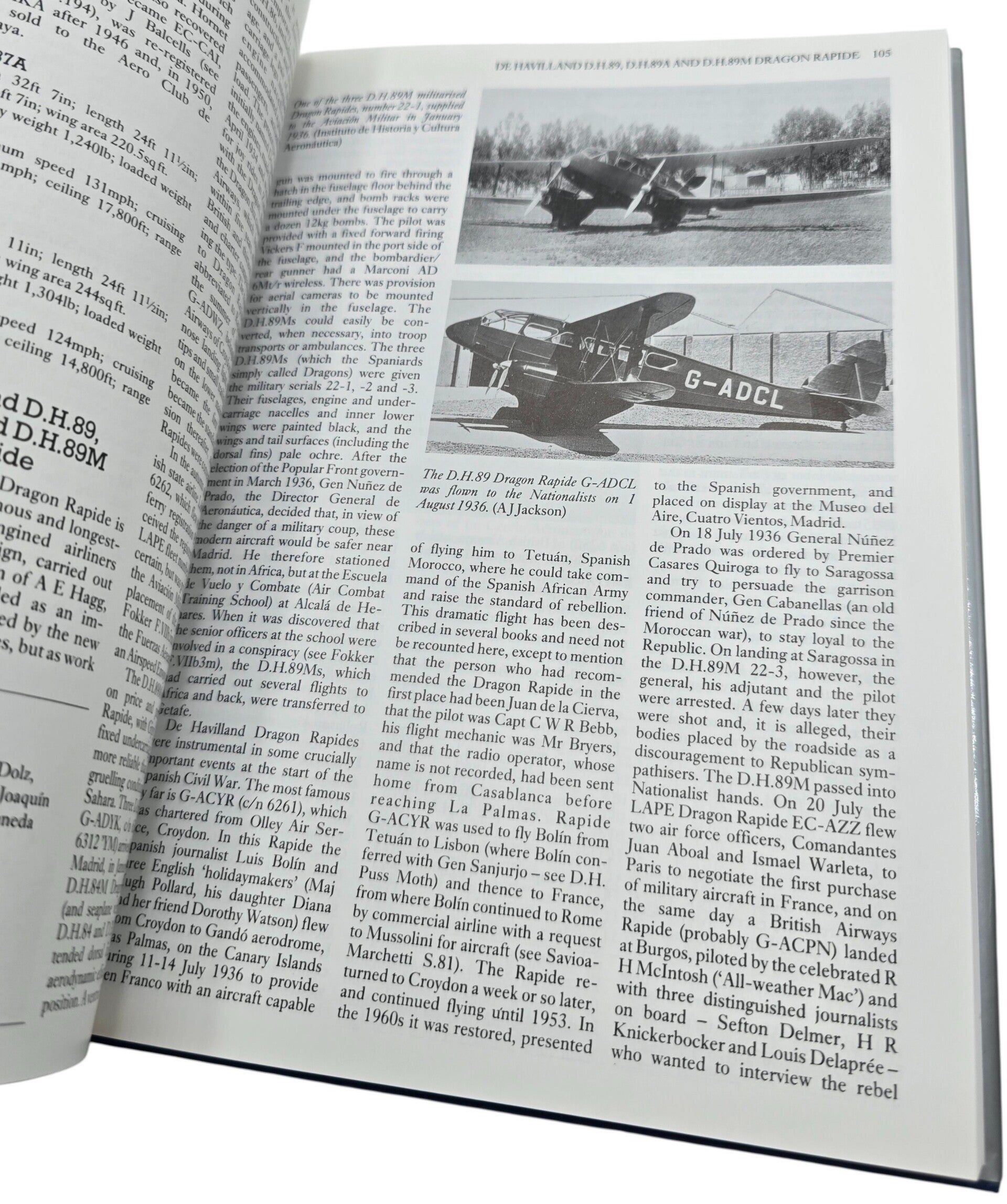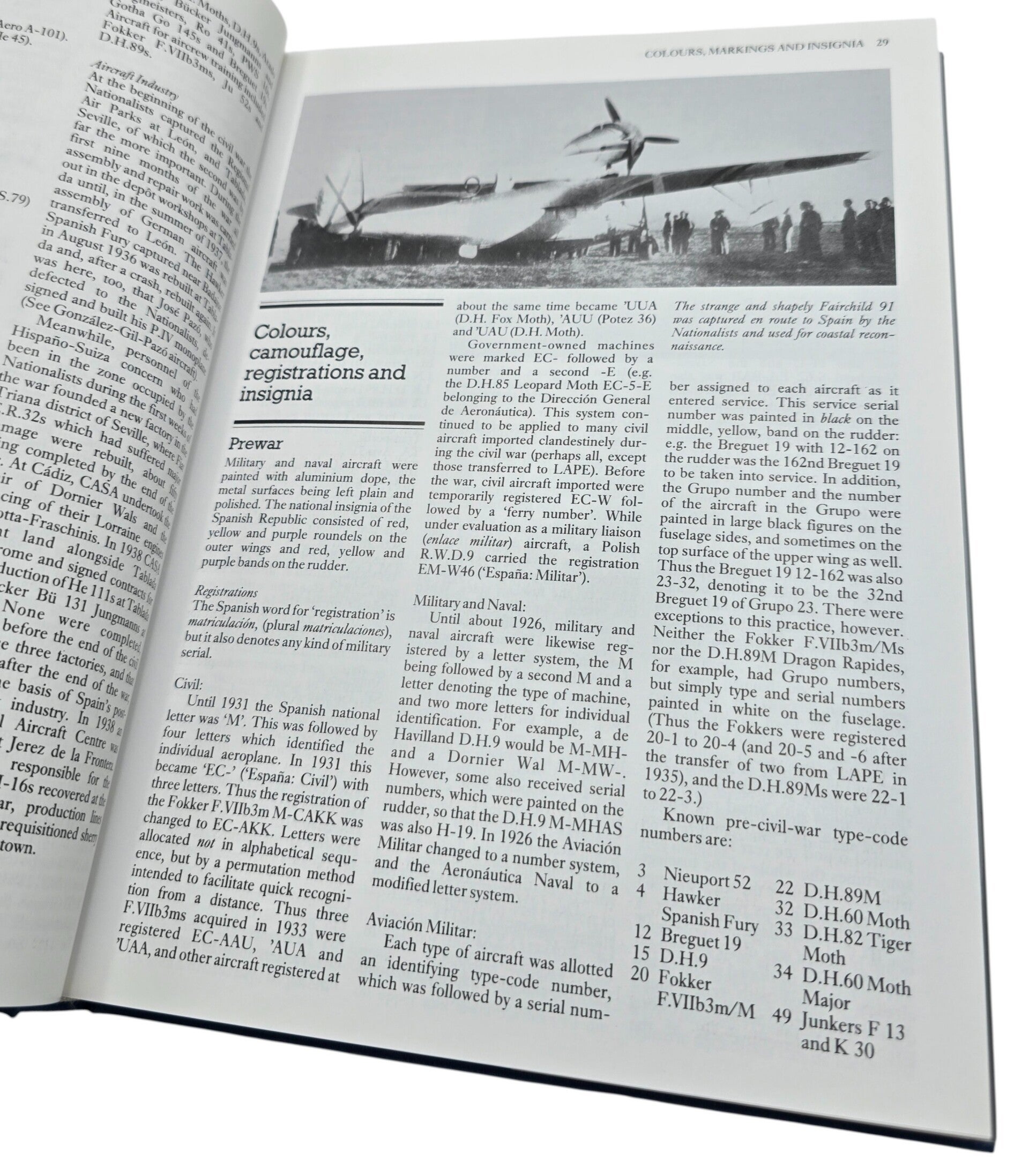 Dit uitgebreide naslagwerk behandelt de vliegtuigtypen die door zowel de Republikeinse als de Nationalistische strijdkrachten werden ingezet tijdens de Spaanse Burgeroorlog. De periode 1936–1939 komt uitvoerig aan bod, met aandacht voor jagers, bommenwerpers, verkenningsvliegtuigen, opleidings- en transporttoestellen, afkomstig uit Spanje zelf en geleverd door buitenlandse mogendheden zoals Duitsland, Italië en de Sovjet-Unie.