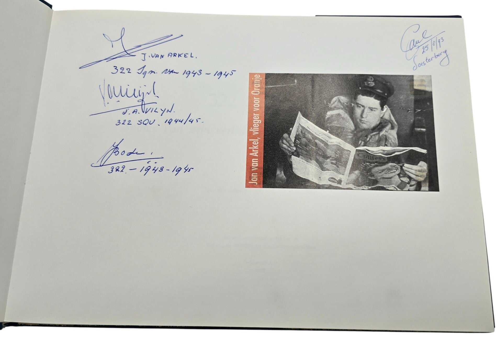 Signed by three Dutch RAF 322 Sq pilots J. van Arkel, J. Vilyn and J. Boden.