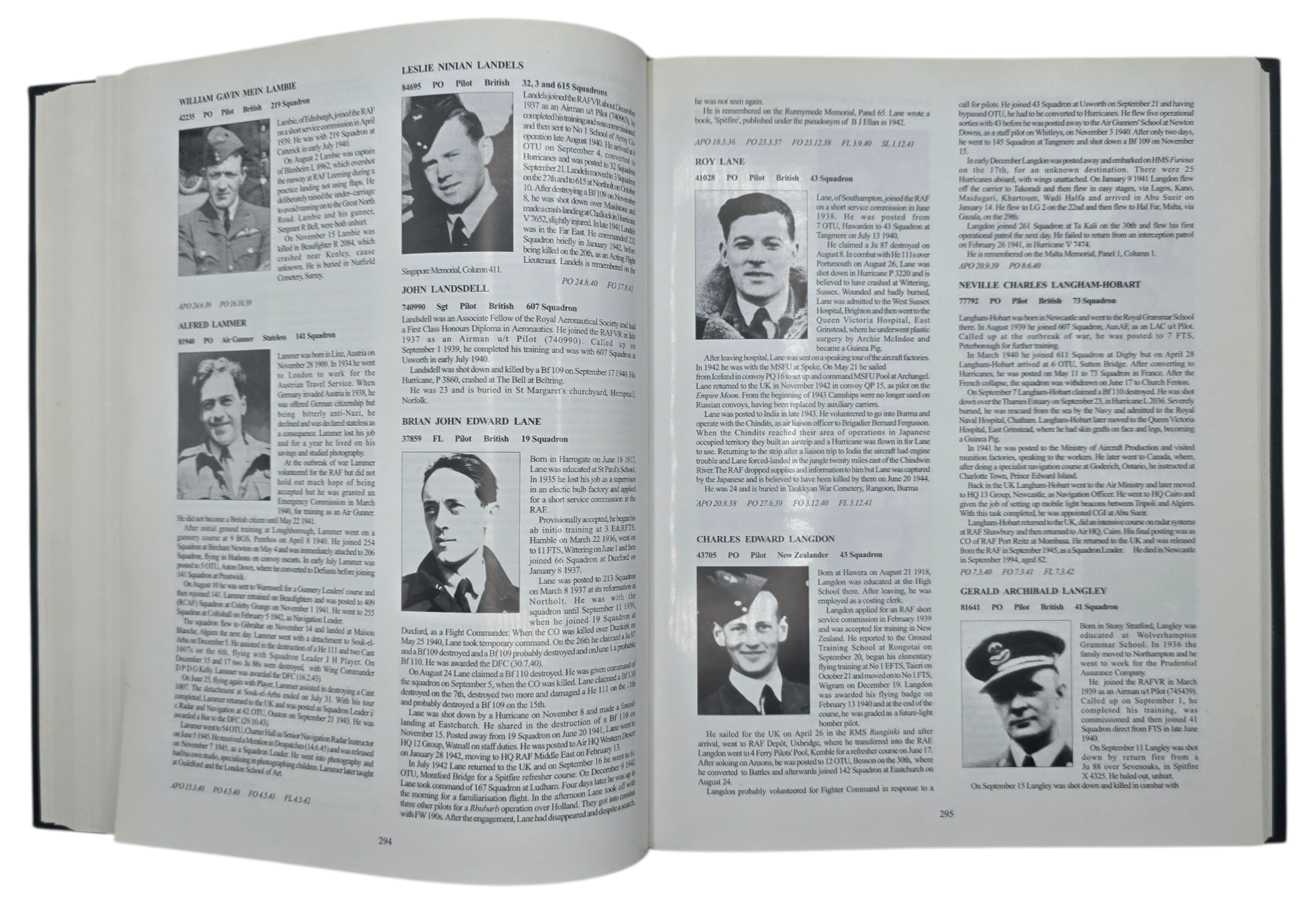 This reference work provides a detailed account of the airmen who participated in the Battle of Britain in 1940. It offers biographical information on fighter pilots and aircrew, including their service records, squadron assignments, operational sorties, victories, and in many cases their later wartime careers. Drawing on official records and archival research, the book serves as an important biographical register of those who flew during one of the decisive air campaigns of the Second World War.