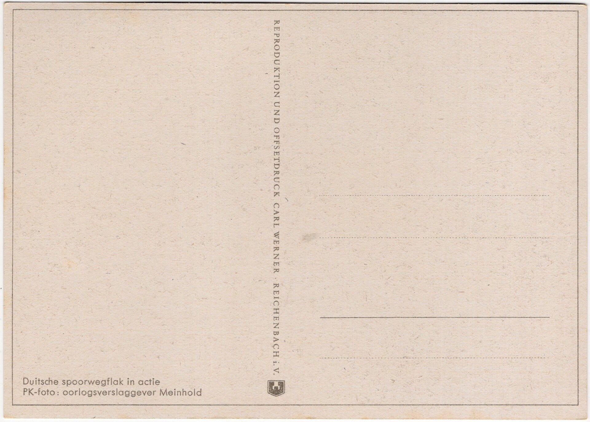 Original WW2 German Postcard - ''Duitsche spoorwegflak in actie'', Meinhold