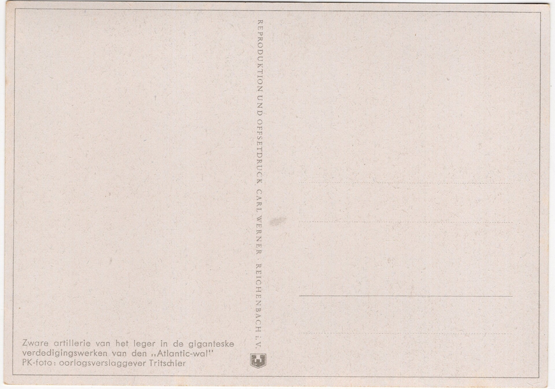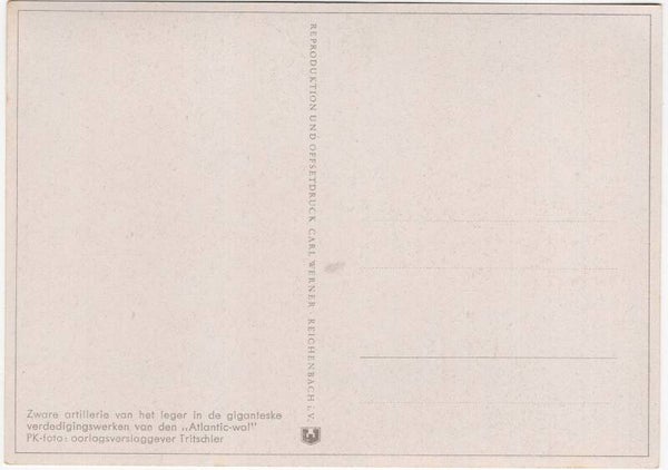 Original WW2 German Postcard - Bunker atlantic wall ''Zware Duitsche artillerie aan den Atlantic-wal'', Tritschler