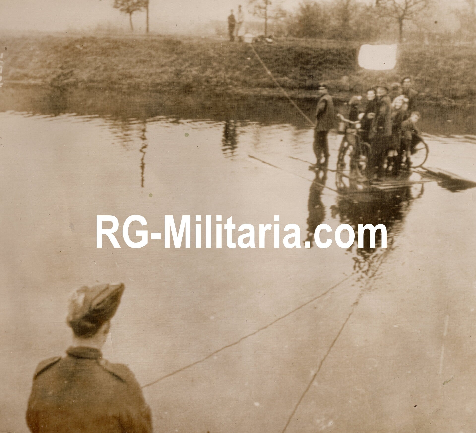 Original WW2 US Press Photo - British Engineers cross river near Tilburg, Holland (1944)