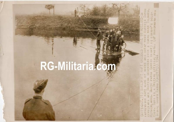 Originele WO2 Amerikaanse US Persfoto - Britse engineers steken een rivier over bij Tilburg, Holland (1944)