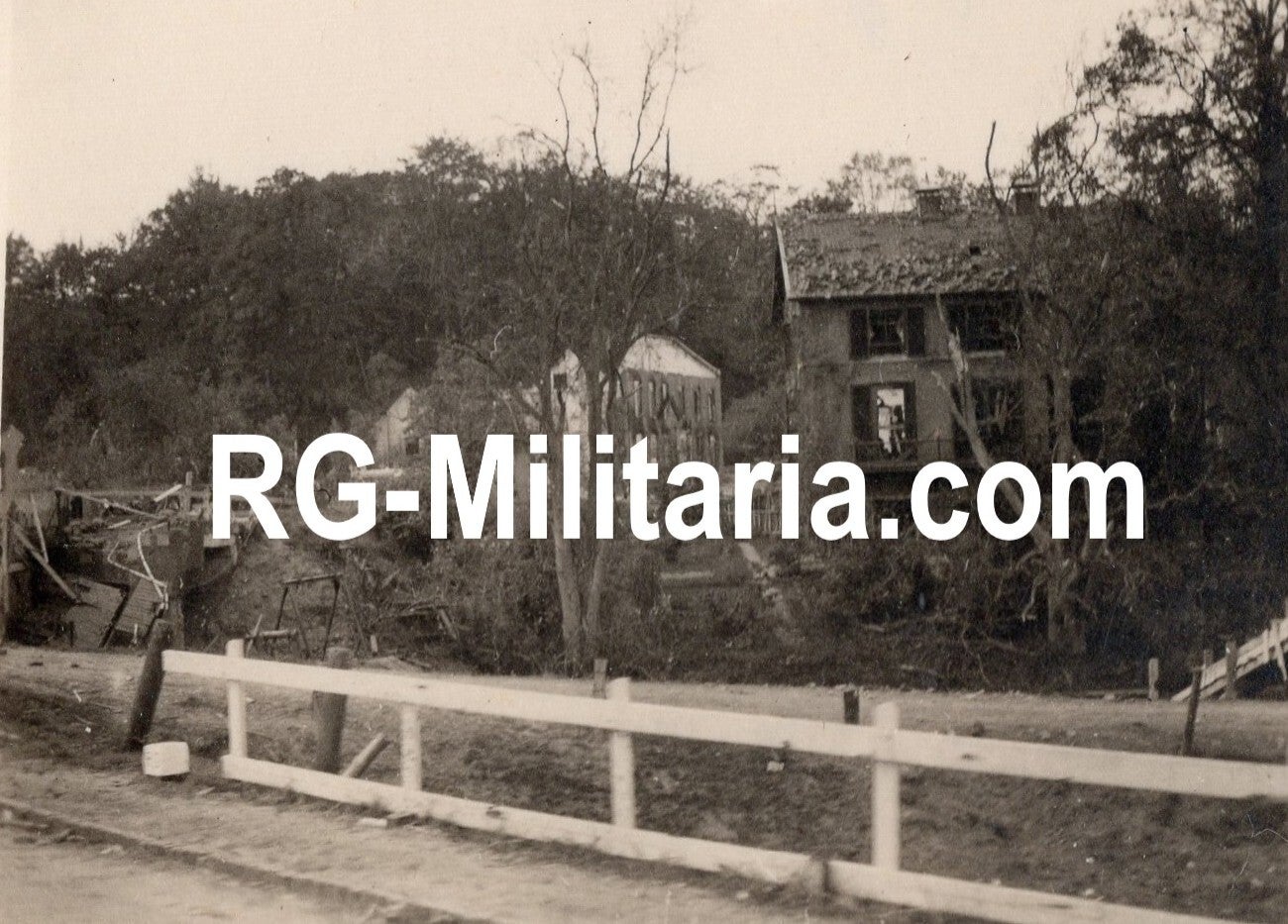 Originele Wo2 Duitse Foto - Vernietigde brug en huizen op de Grebbenerg, Rhenen, Mei, Nederland (1940)