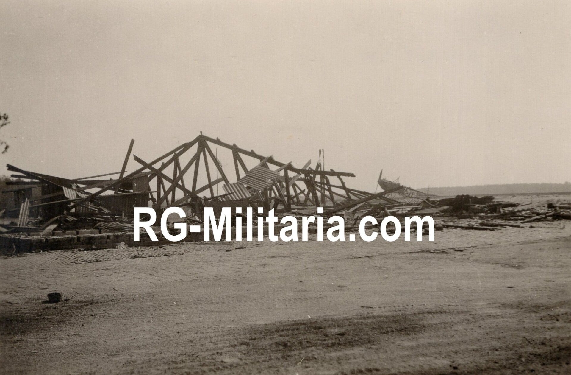 Originele Wo2 Duitse Foto - Schade op Fliegerhorst Gilze Rijen met een Fokker C5 in de achtergrond, Holland, Mei (1940)