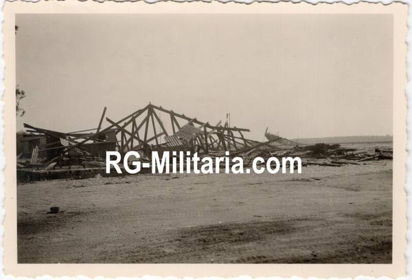 Original WW2 German Photo - Damage at Fliegerhorst Gilze Rijen, with a Fokker C V in the background, Holland, May (1940)