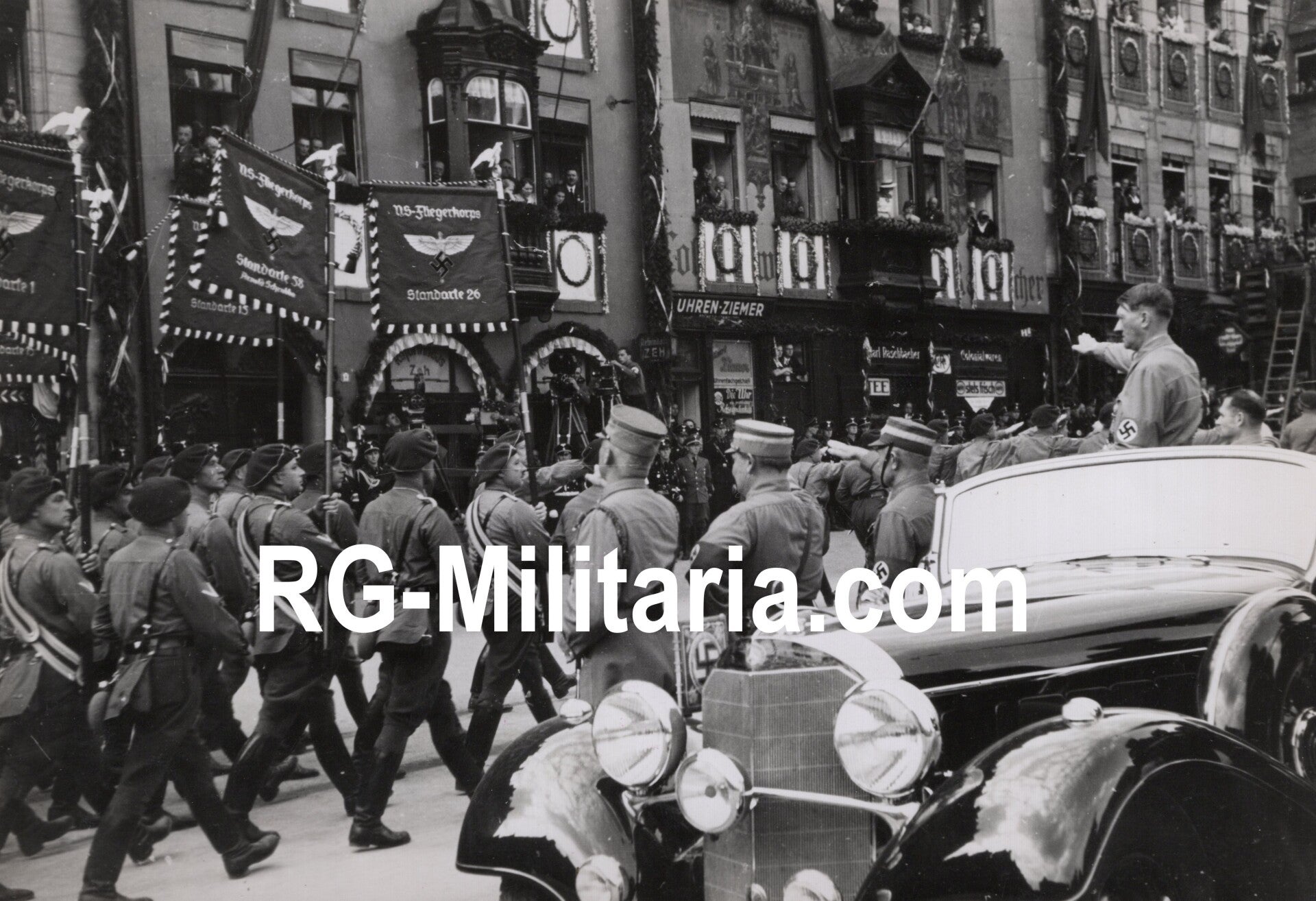 Original WW2 German Press Photo - NSFK NS Fliegerkorps parade, Adolf Hitler and Friedrich Christiansen salute, Reichsparteitag Nürnberg (1938)
