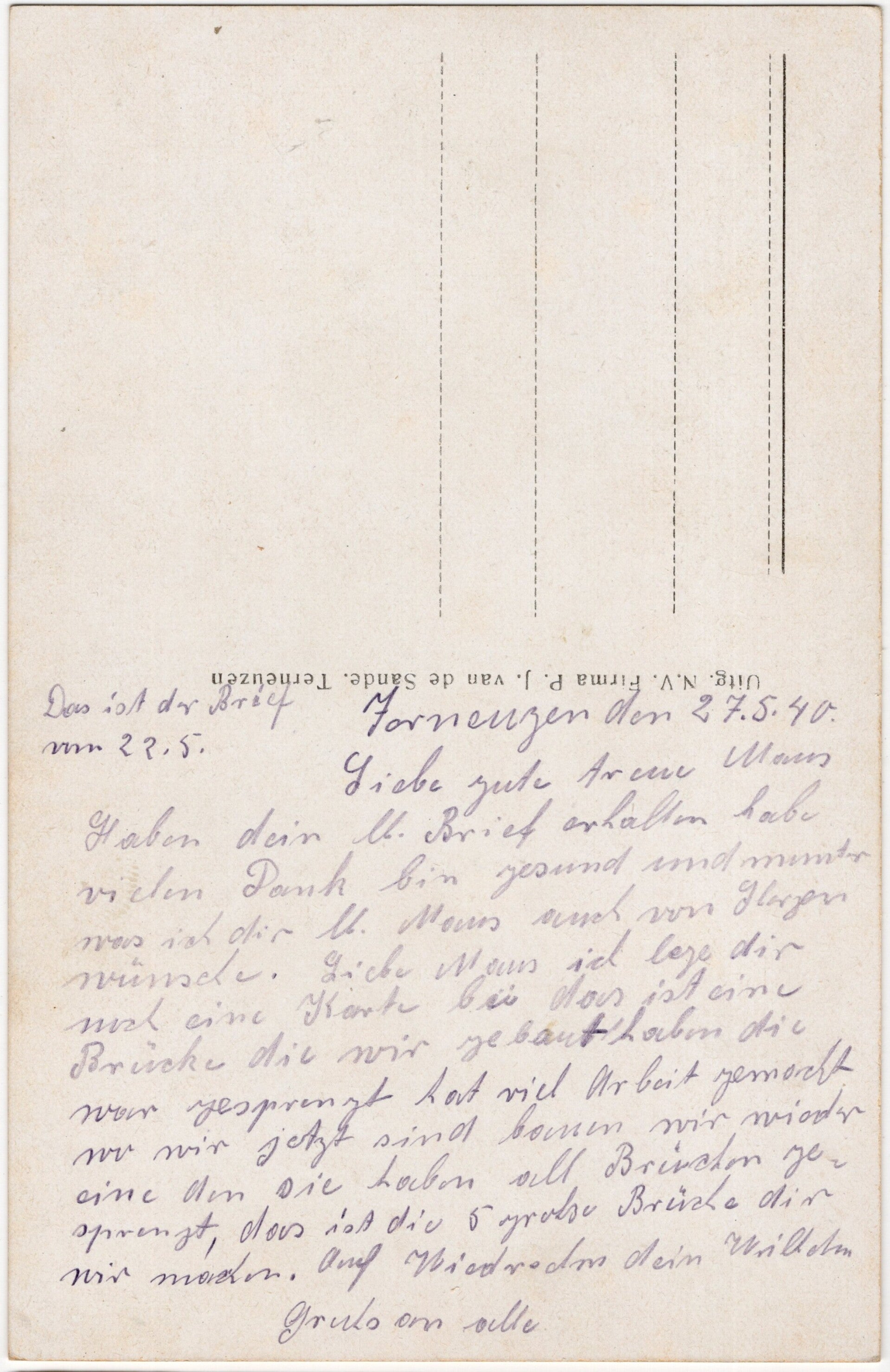 Original Dutch WW2 Postcard - Feldpost Terneuzen May (1940)