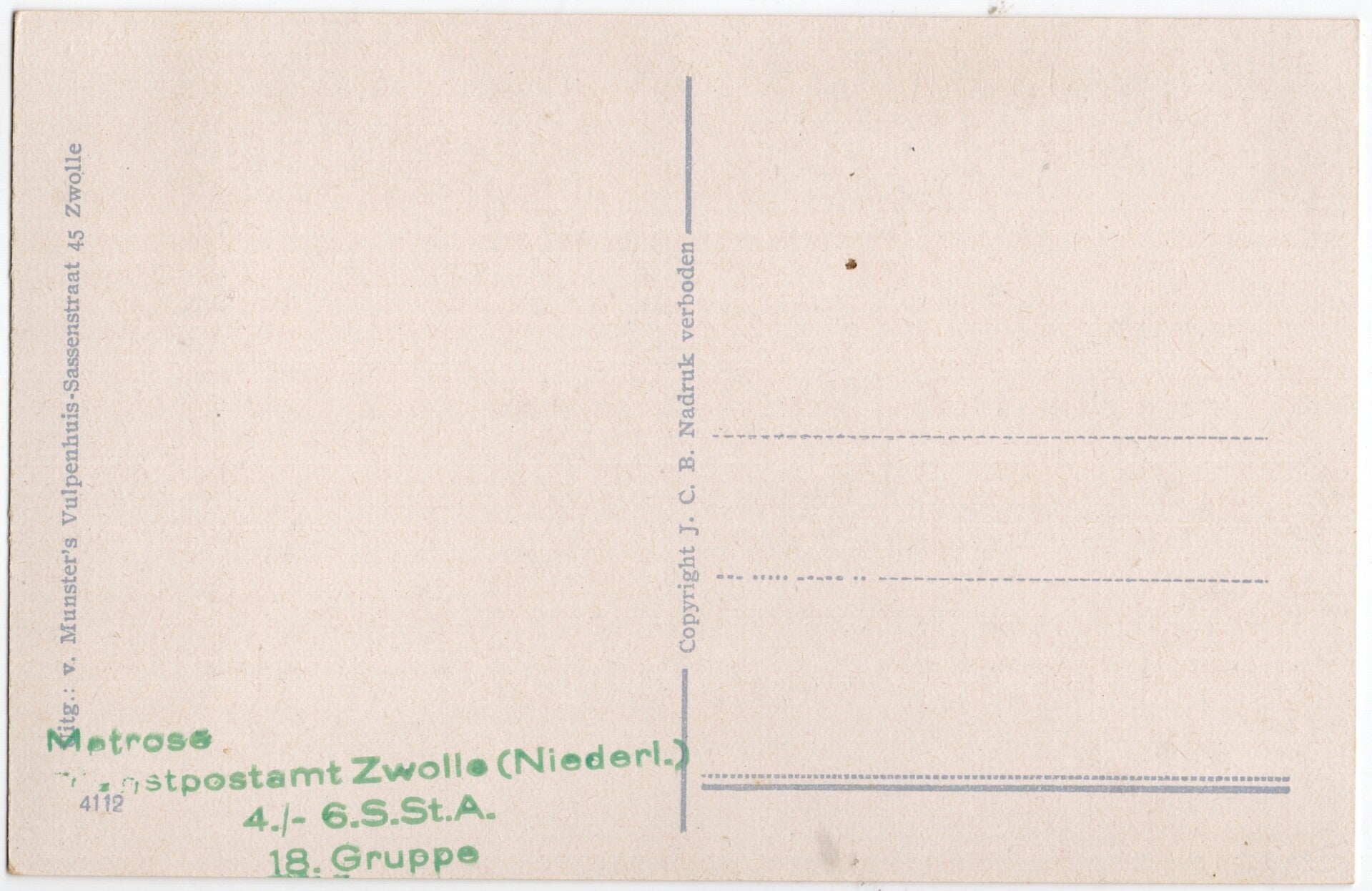 Original Dutch WW2 Postcard - Feldpost Dienstpostamt Zwolle 4./- 6 S. St. A. 18 Gruppe Schiffsstammabteilung
