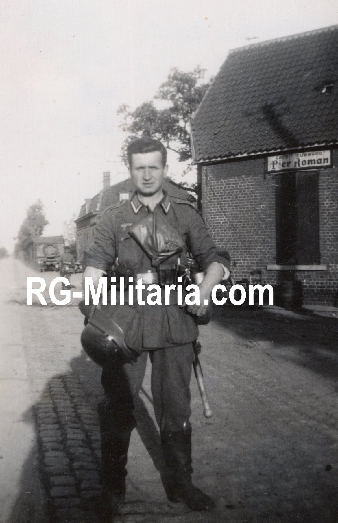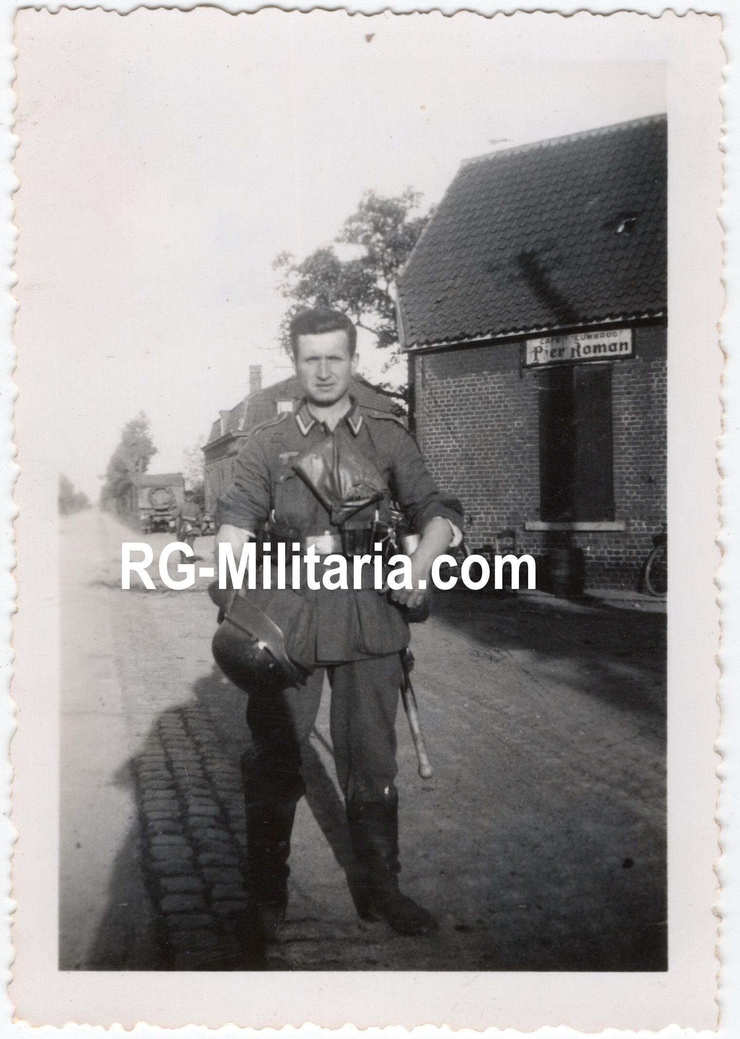 Original WW2 German Photo - Wehrmacht soldier in Holland, Cafe Nieuwbrug, Pier Roman (1940)