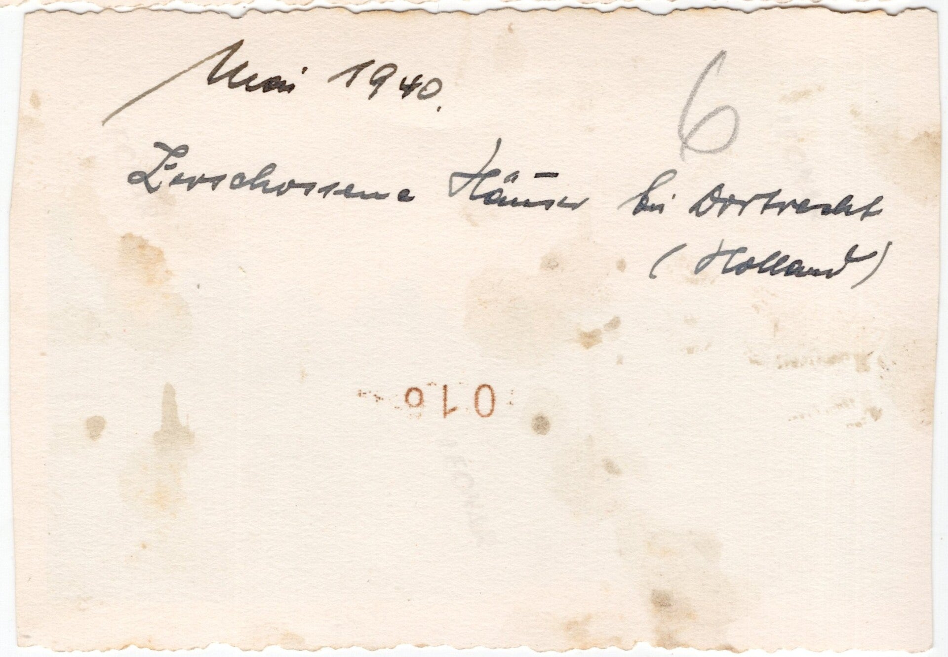 Originele Wo2 Duitse Foto - Vernietigde huizen in Zwijndrecht, Dordrecht, Rotterdam, Nederland, Mei (1940)