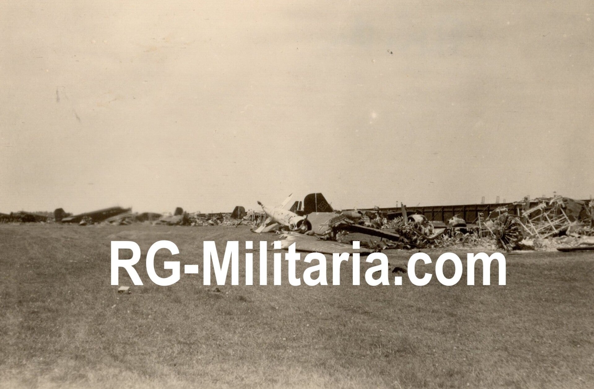 Originele Wo2 Duitse Foto - Rotterdamse vliegveld Waalhaven met een vernietigde Junker JU 52 vliegtuigen, Nederland (1940)