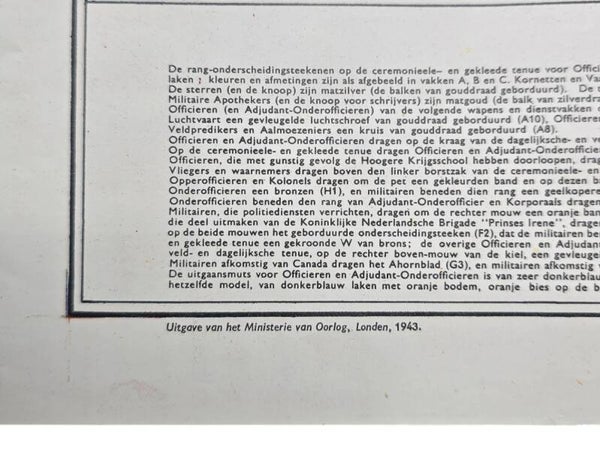 Original WW2 Allied Dutch Poster - Distinctives and Badges of Rank for the Royal Netherlands Army, London (1943)