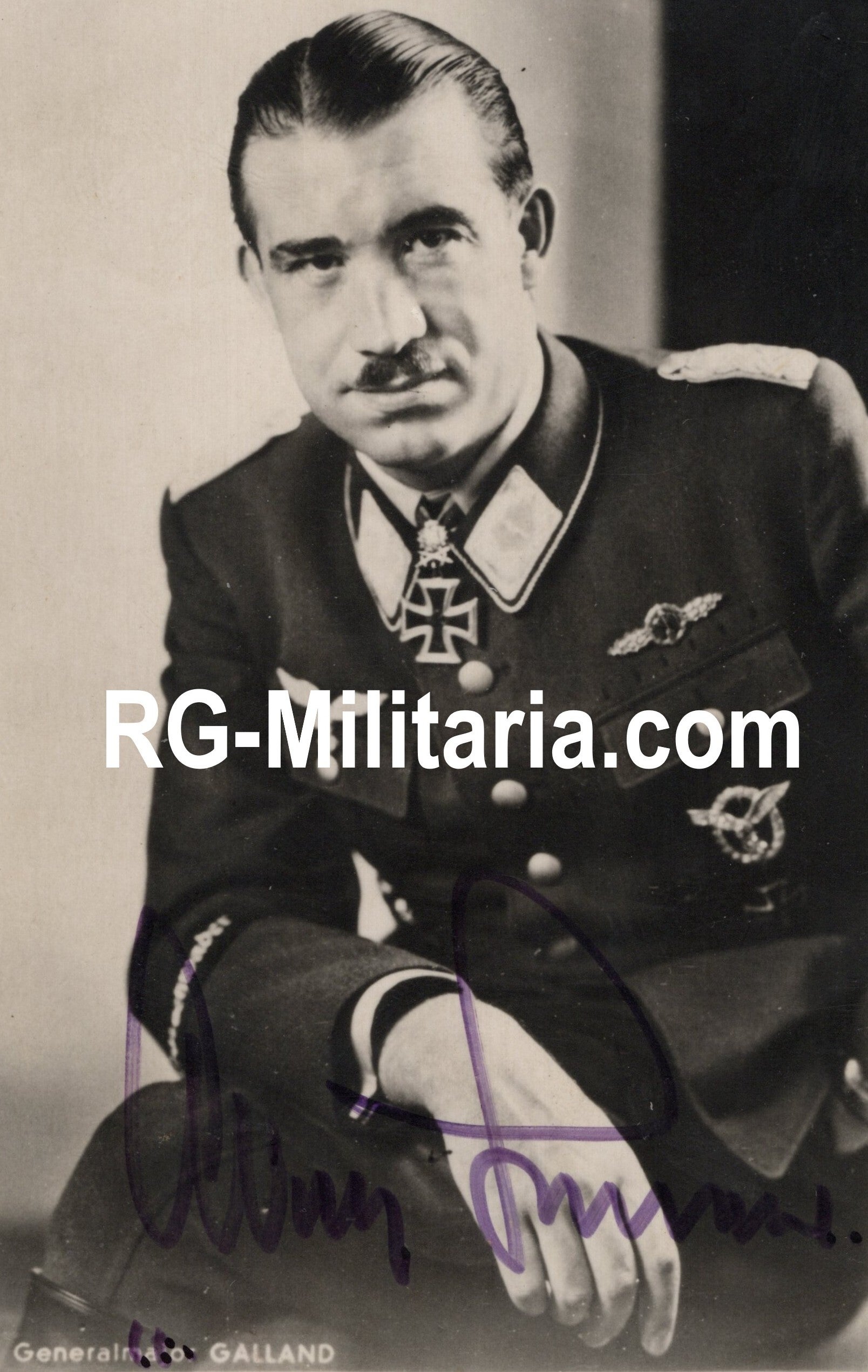 Copy of the postcard picture by Heinrich Hoffmann. Original postwar signed picture of Adolf Galland.