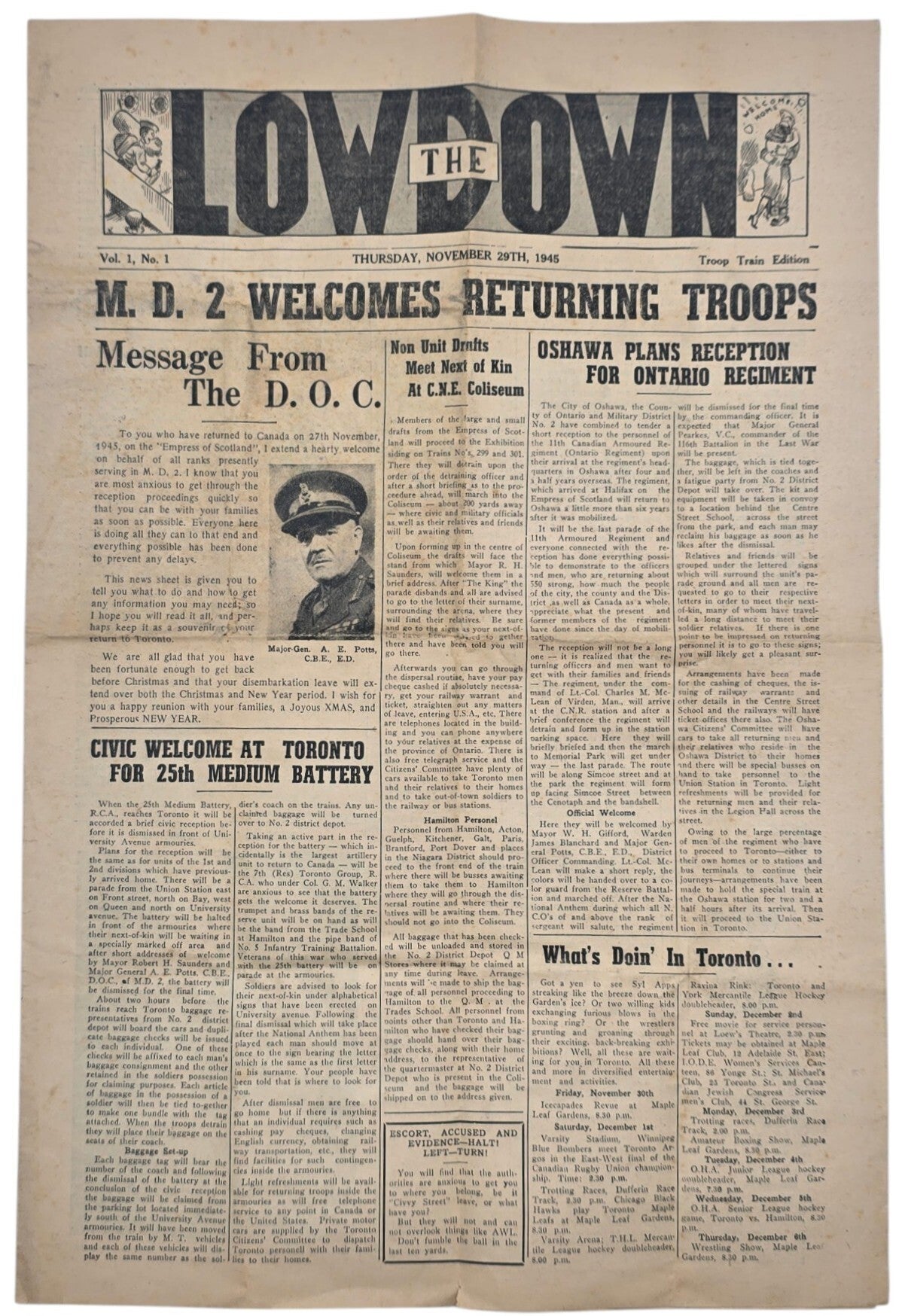 Original WW2 Canadian Newspaper - The Lowdown, Troop Train Edition Vol 1. No. 1 (1945)