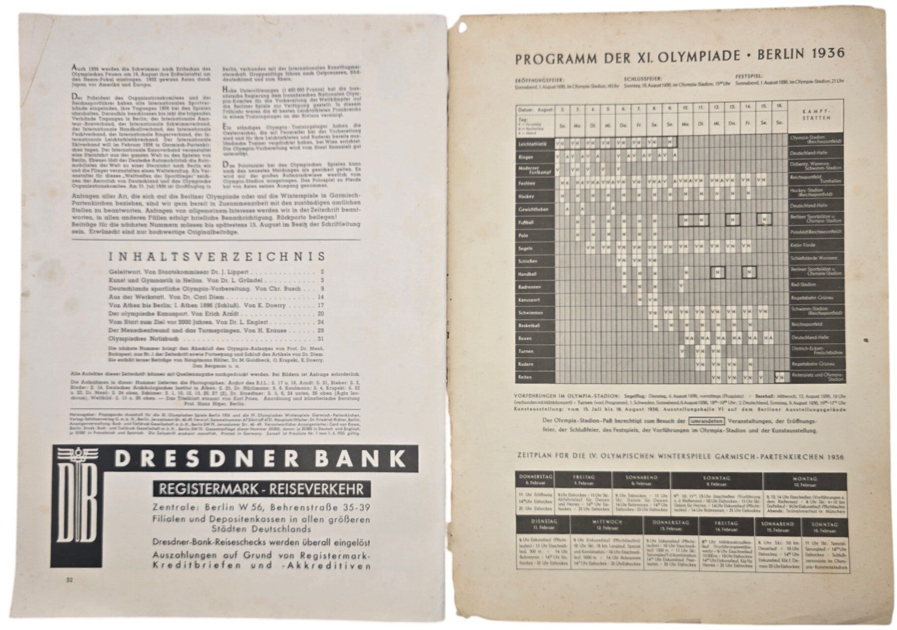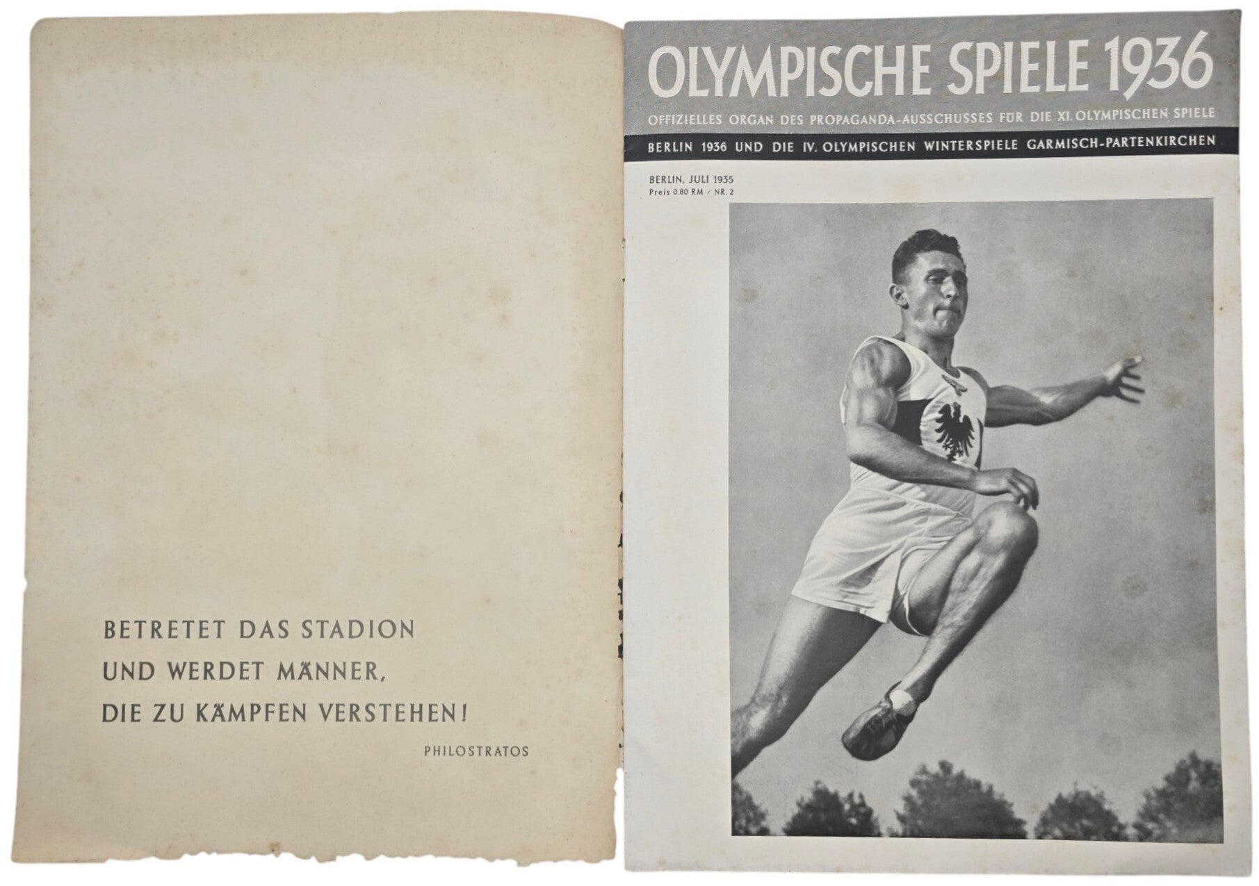 Magazine about the Olympic Games of 1936. The spine and cover have damage.