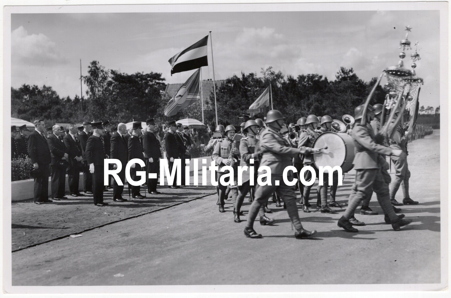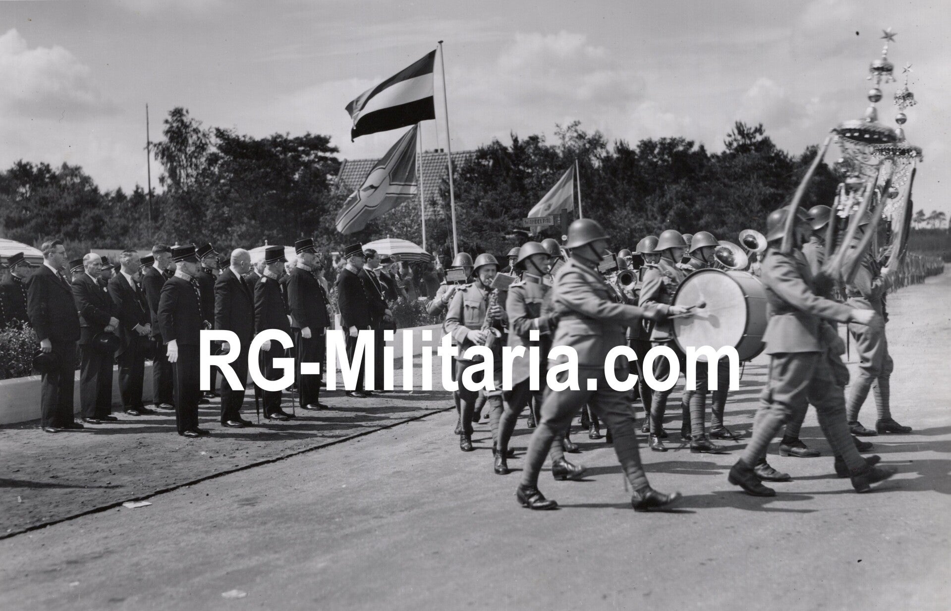Original WW2 Dutch Press Photo - LVA Luchtvaartafdeeling gathering Soesterberg, July, Dutch music corps march (1938)