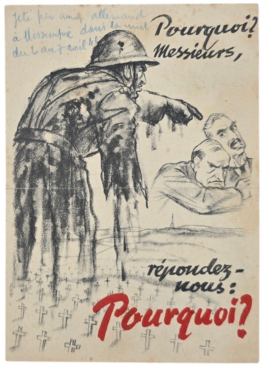 Original WW2 German Leaflet - Pourquoi? Messieurs, répondez-nous : Pourquoi? (1940)