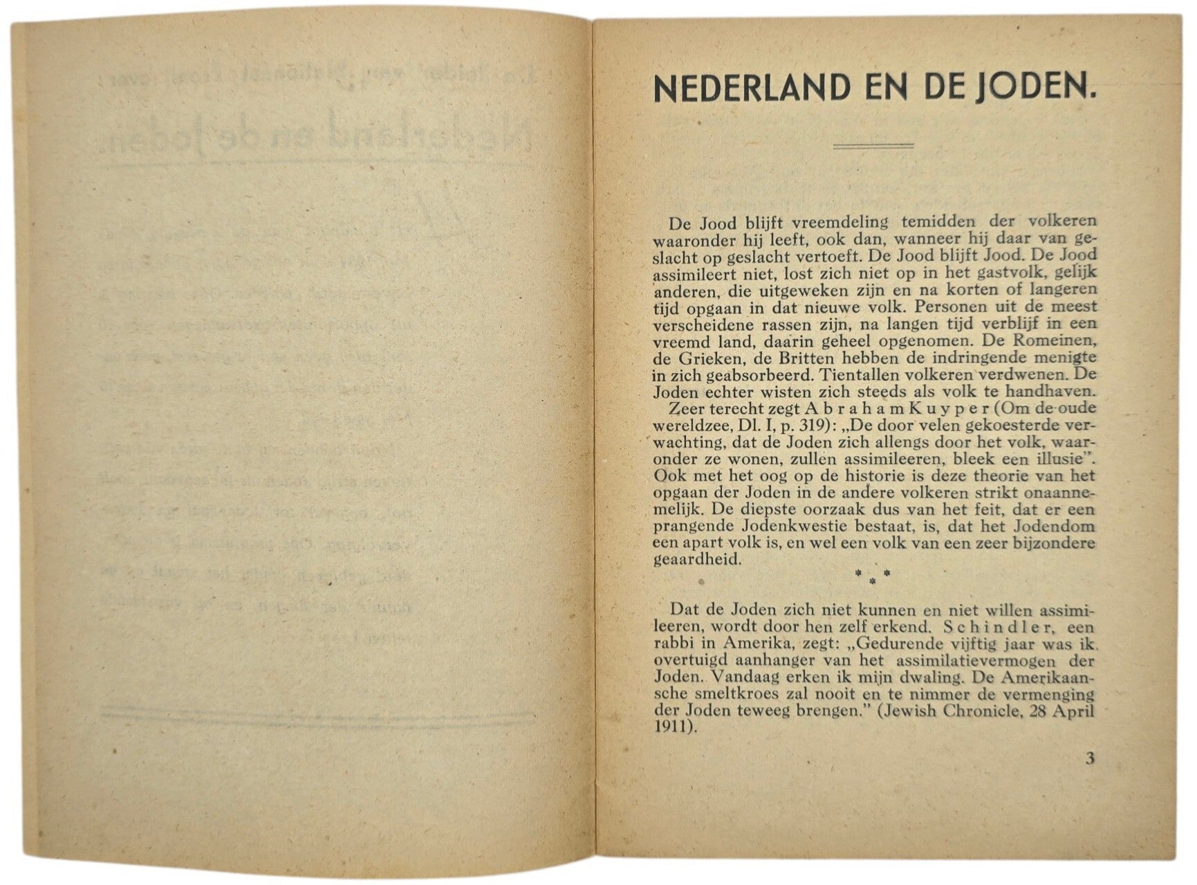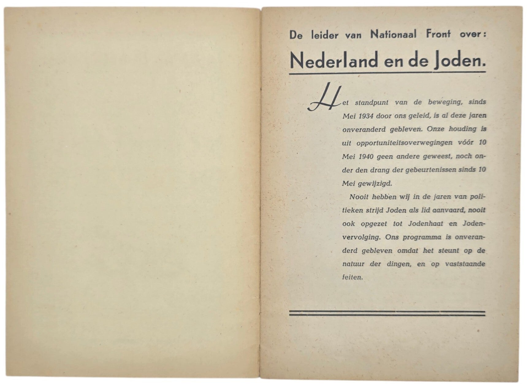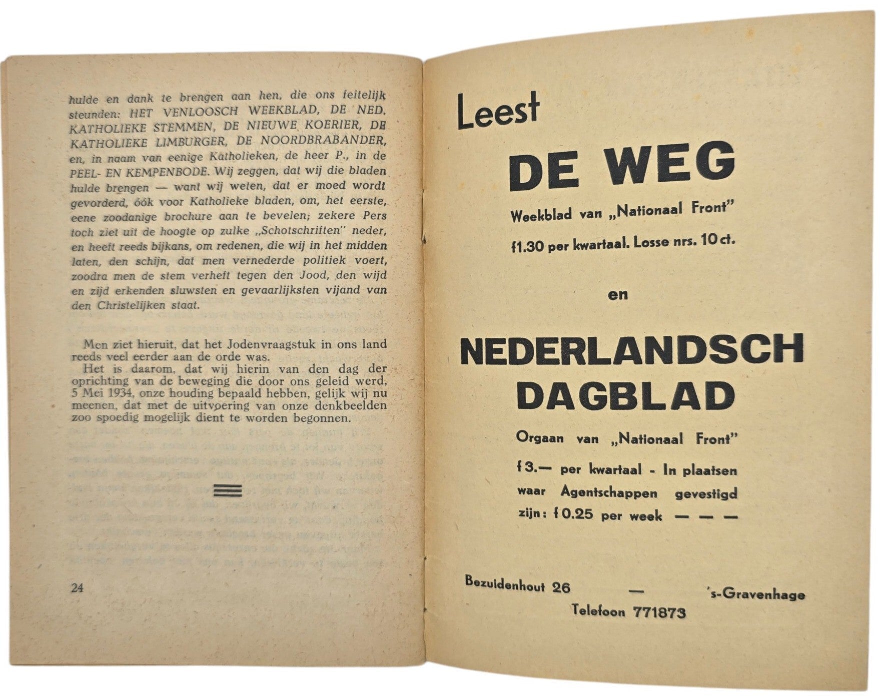 Original WW2 Dutch Antisemitic Collaboration Brochure - Nederland en de Joden, Arnold Meijer, Nationaal Front (1941)