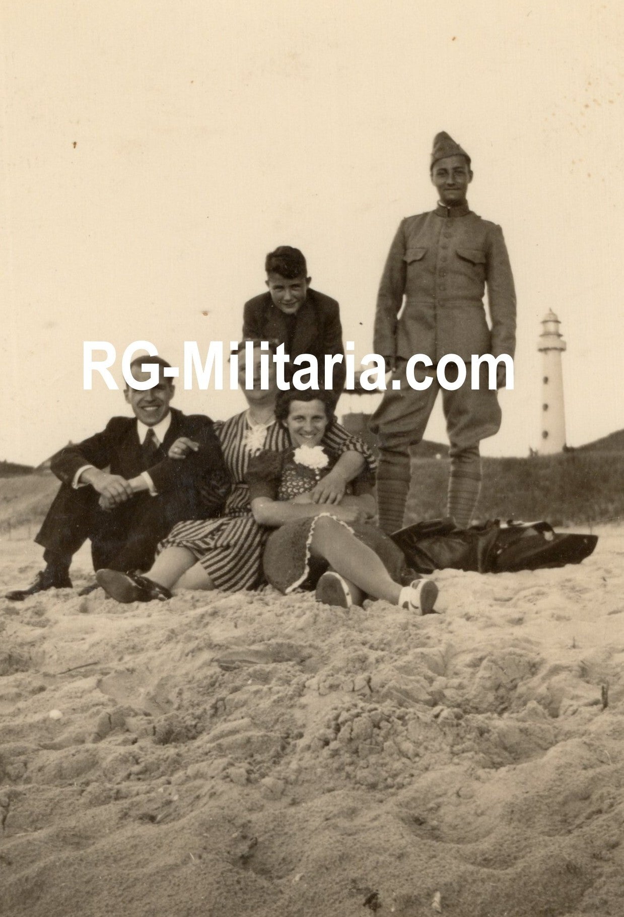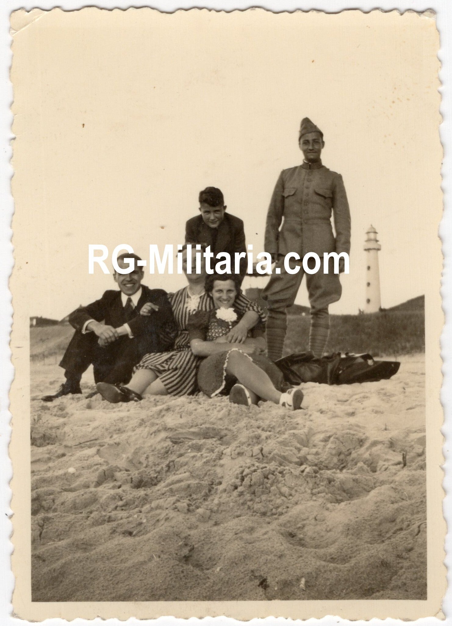 Originele Wo2 Nederlandse Foto - Familiefoto met Nederlandse militair, Egmond aan Zee