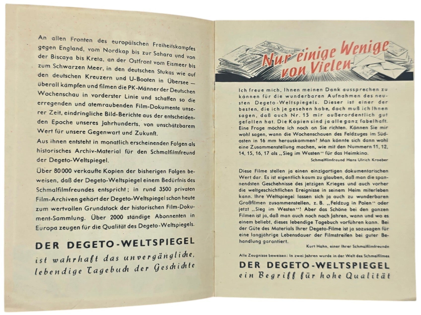 Original WW2 Dutch Brochure - Der Degeto Weltspiegel advertisement ''Einer, der dabei war'' (1940)