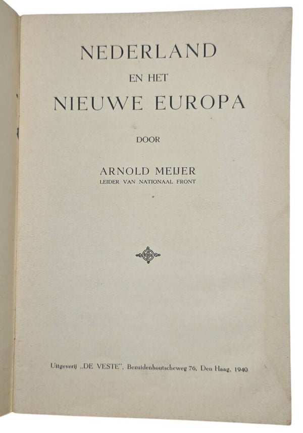 Original WW2 Dutch Collaboration Brochure - Nederland en het Nieuwe Europa, Arnold Meijer (1940)