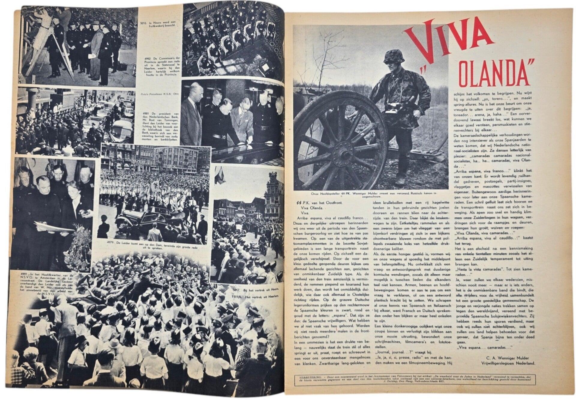Original WW2 Dutch Collaboration NSB Magazine - Fotonieuws, 2de year No. 7 ''Naar Oostland willen wij Rijden'' Dutch SS (1942)