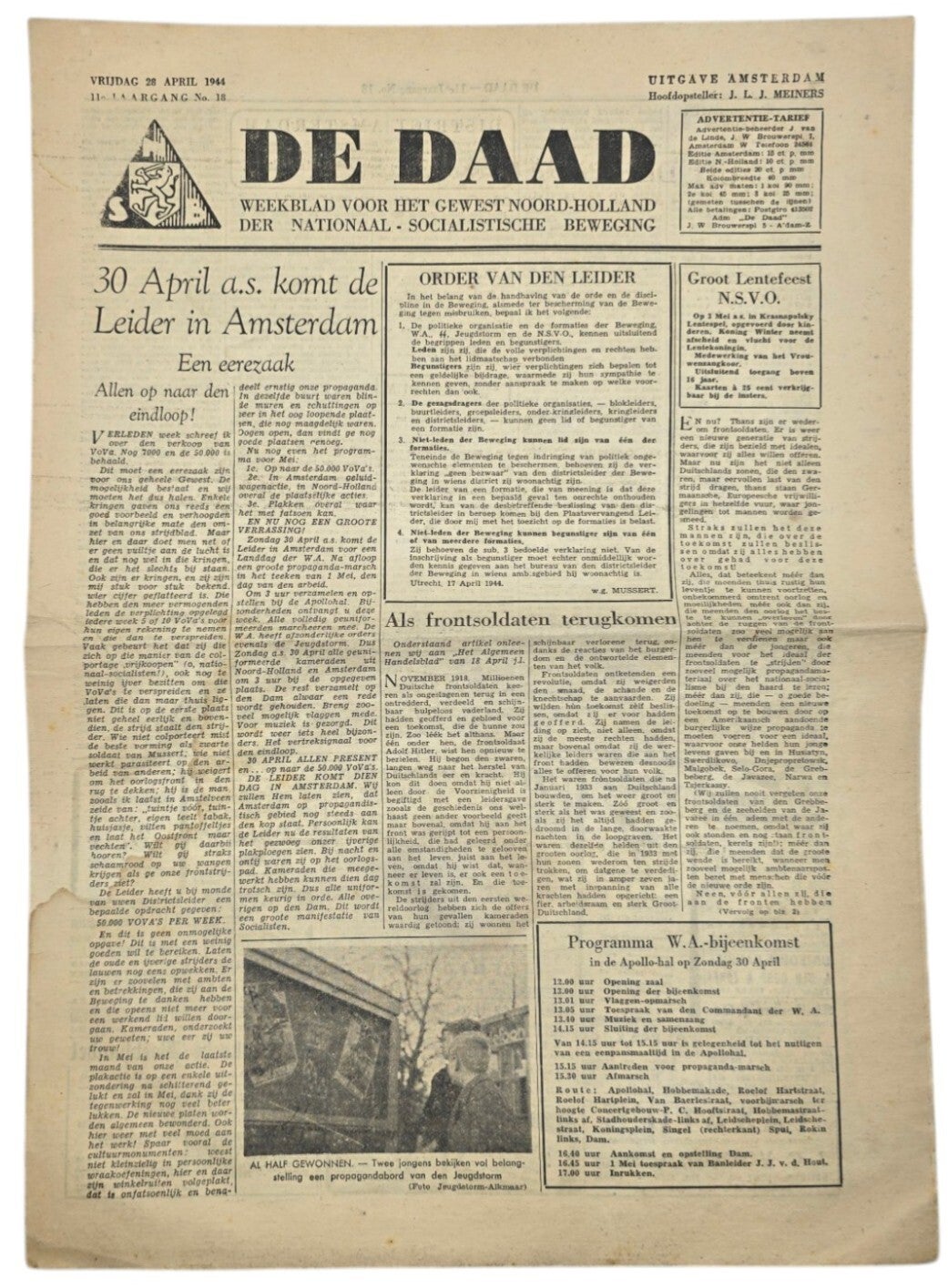 Original WW2 Dutch Collaboration NSB Newspaper - De Daad Amsterdam 11th year No. 18 (1944)