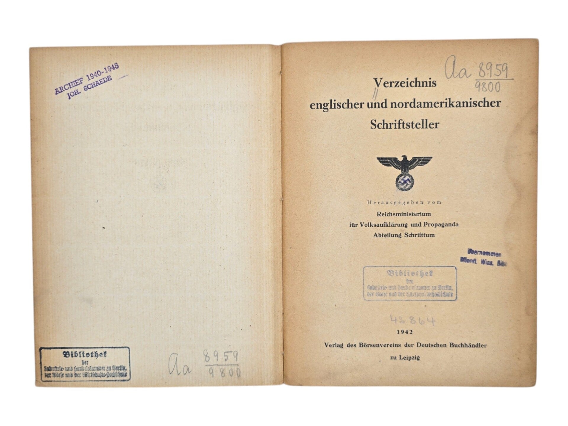 Original WW2 German Book - Verzeichnis englischer und nordamerikanischer Schriftsteller (1942)